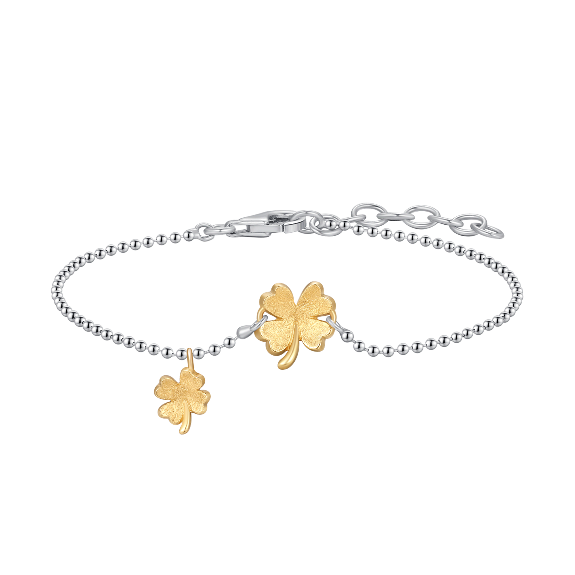 Sølv armbånd rhodineret kulgekæde med 2 firkløver af 4 forgyldt hjerter.