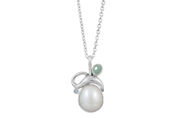 11mm hvid ferskvandsperle, 5x4 mm aqua blå kvarts, 2mm sky blå topas