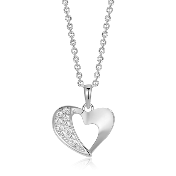 Sølv halskæde rhodineret hjerte med syntetiske cubic zirconia.