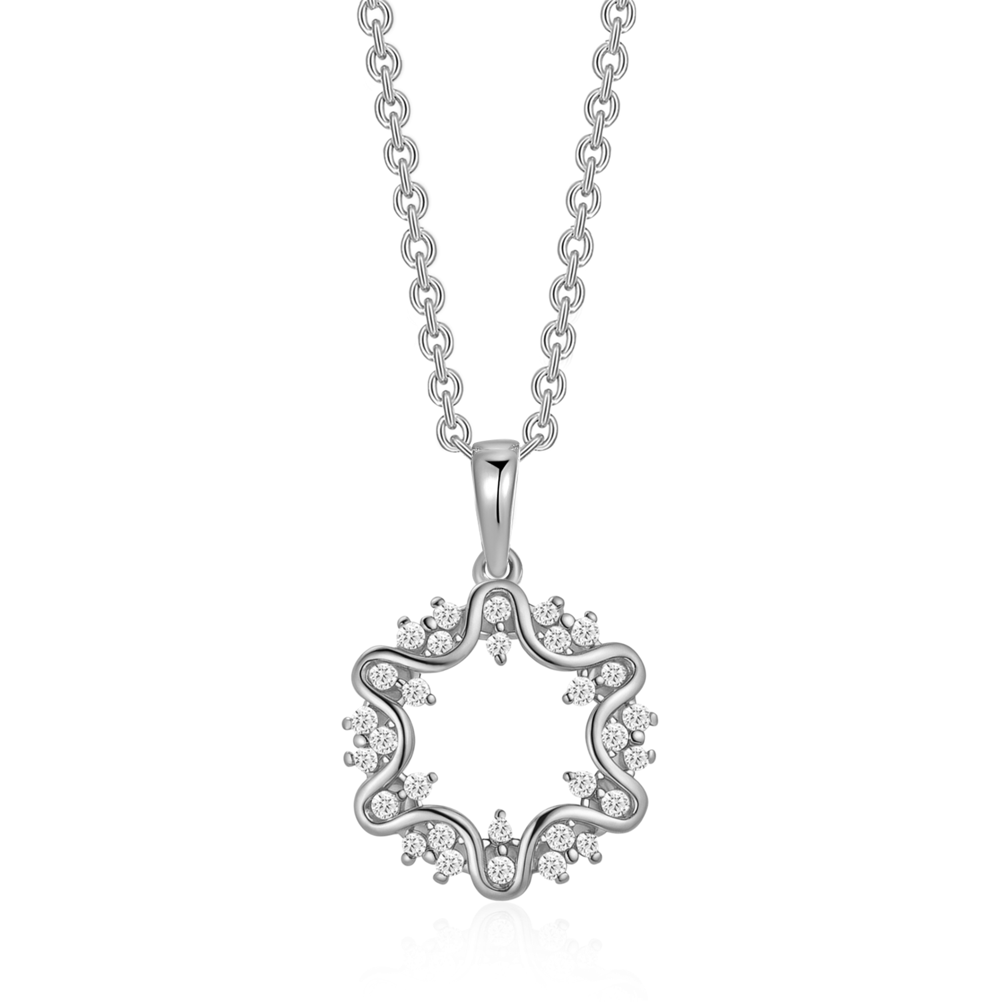 Sølv halskæde rhodineret cirkel med stjerne og syntetiske cubic zirconia.