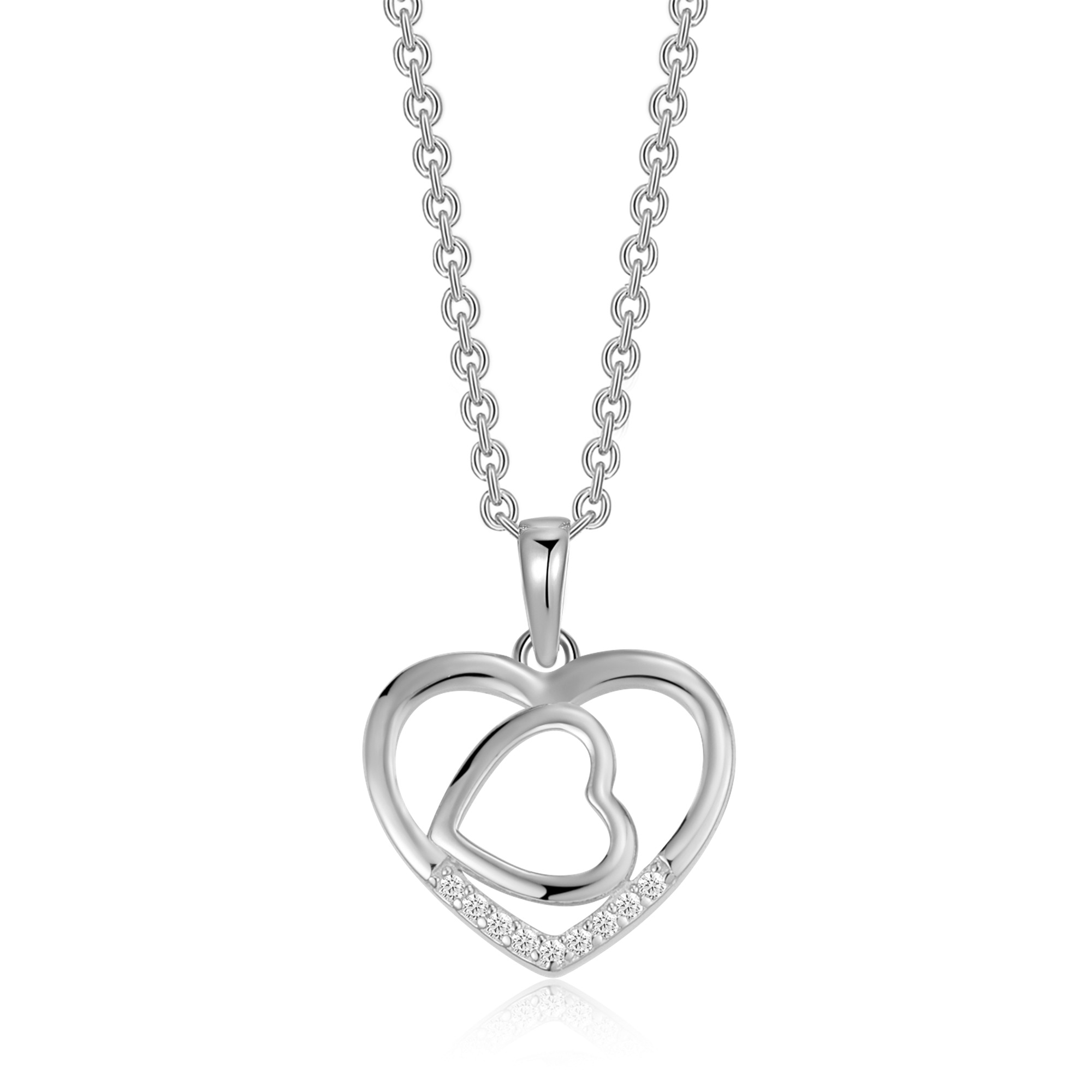 Sølv halskæde rhodineret dobbelt hjerte med syntetiske cubic zirconia.