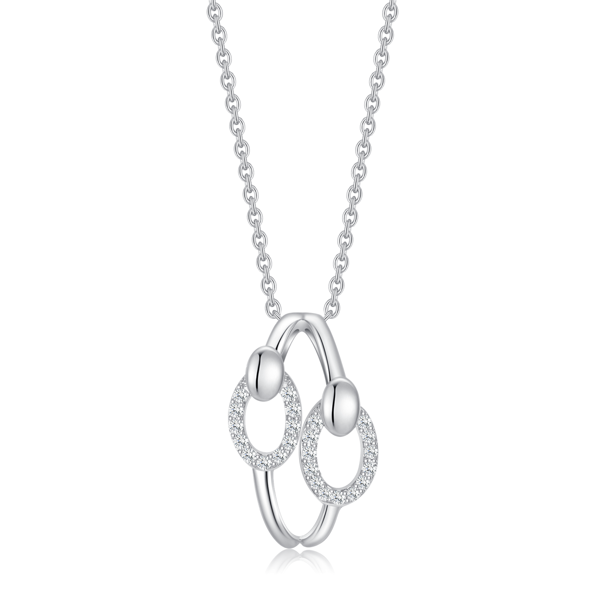 Sølv halskæde rhodineret oval med syntetiske cubic zirconia på kanten og lukket ovale på toppen.
