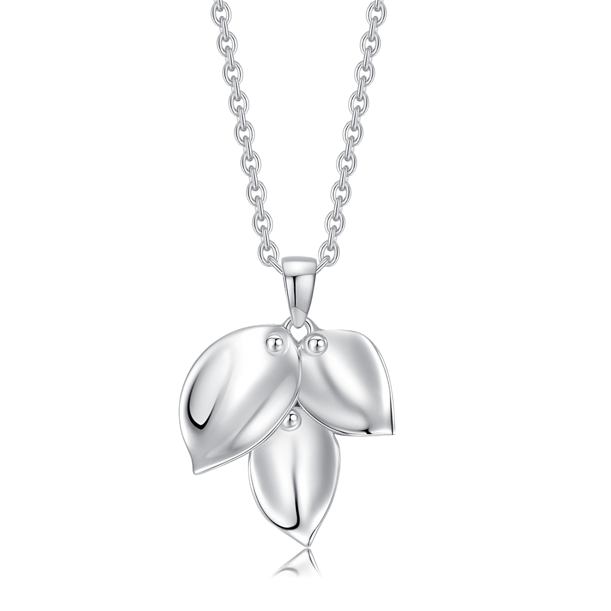 Sølv halskæde rhodineret 3 blade med knoppe på toppen.