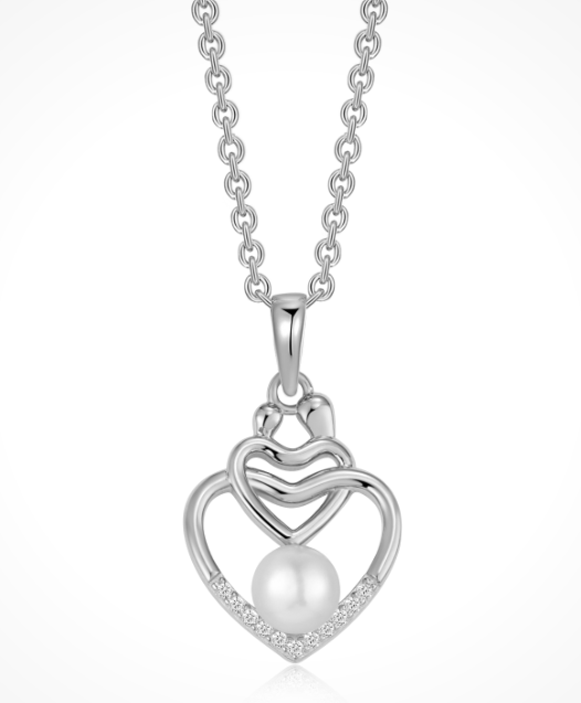 Elegant halsband från danska Støvring Design. Tillverkat i rhodinerat sterlingsilver med två hjärtan, glittrande zirkonia och en vacker vit sötvattenspärla. Justerbar kedja på 42–45 cm som passar perfekt till både vardag och fest.