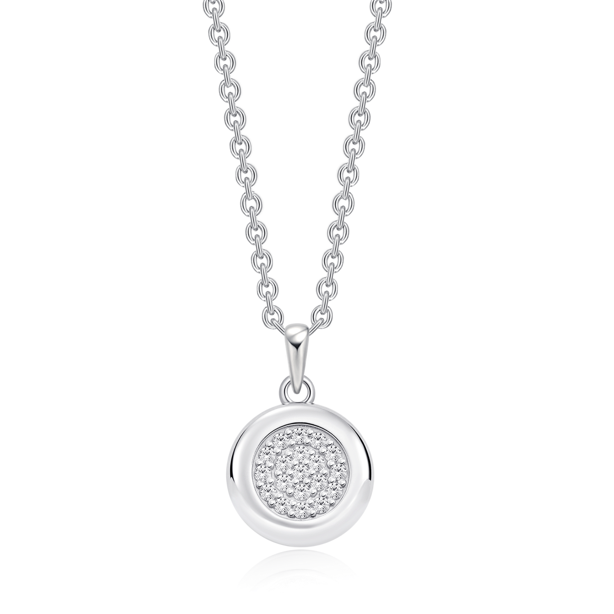 Sølv halskæde rhodineret fyldt cirkel med syntetiske cubic zirconia.