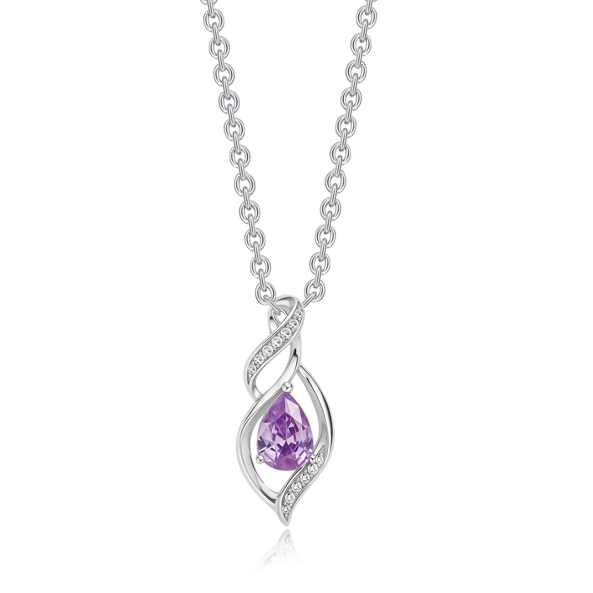 Sølv halskæde rhodineret skæv dråbe med en syntetisk ametyst og syntetiske cubic zirconia.