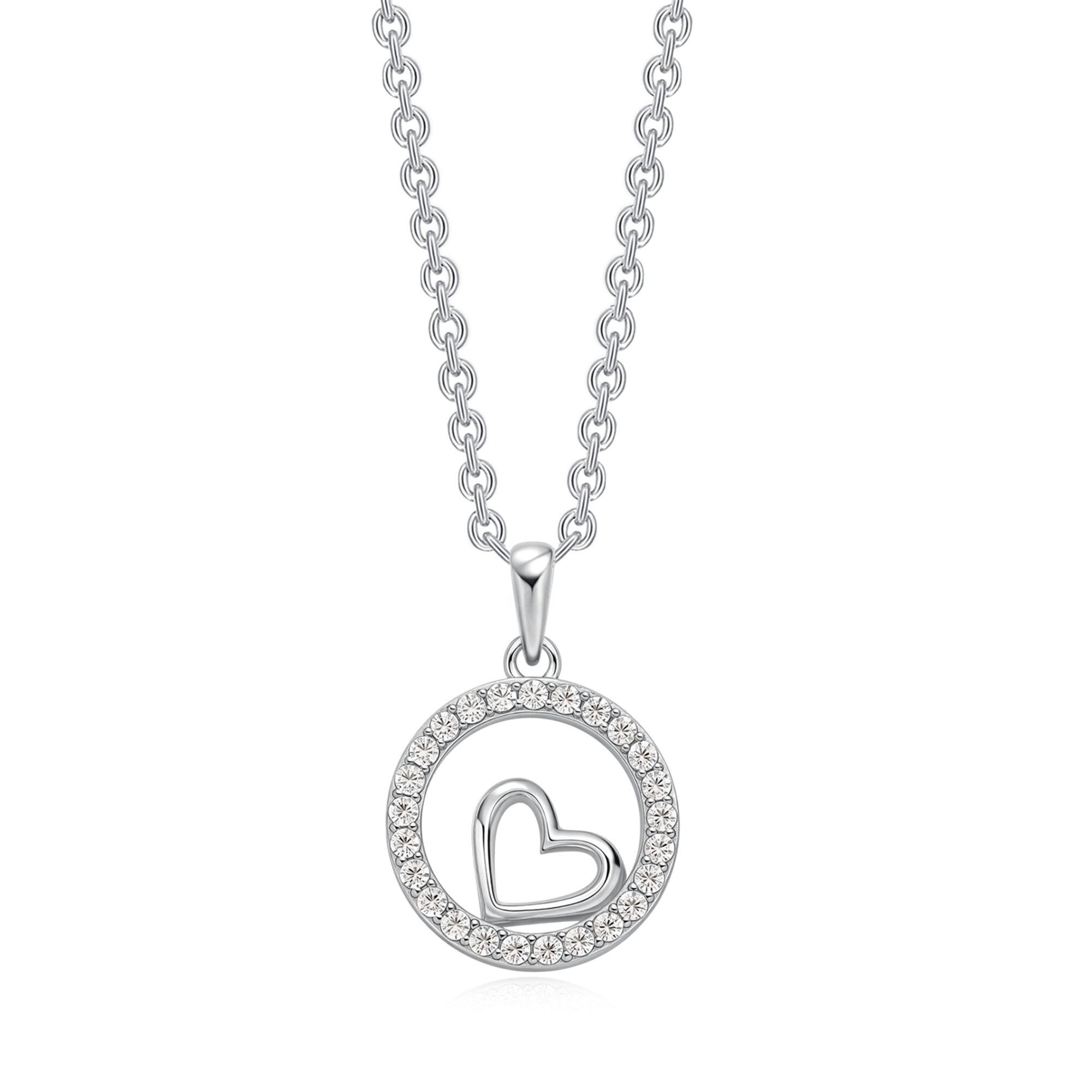 Sølv halskæde rhodineret cirkel med hjerte og syntetiske cubic zirconia.