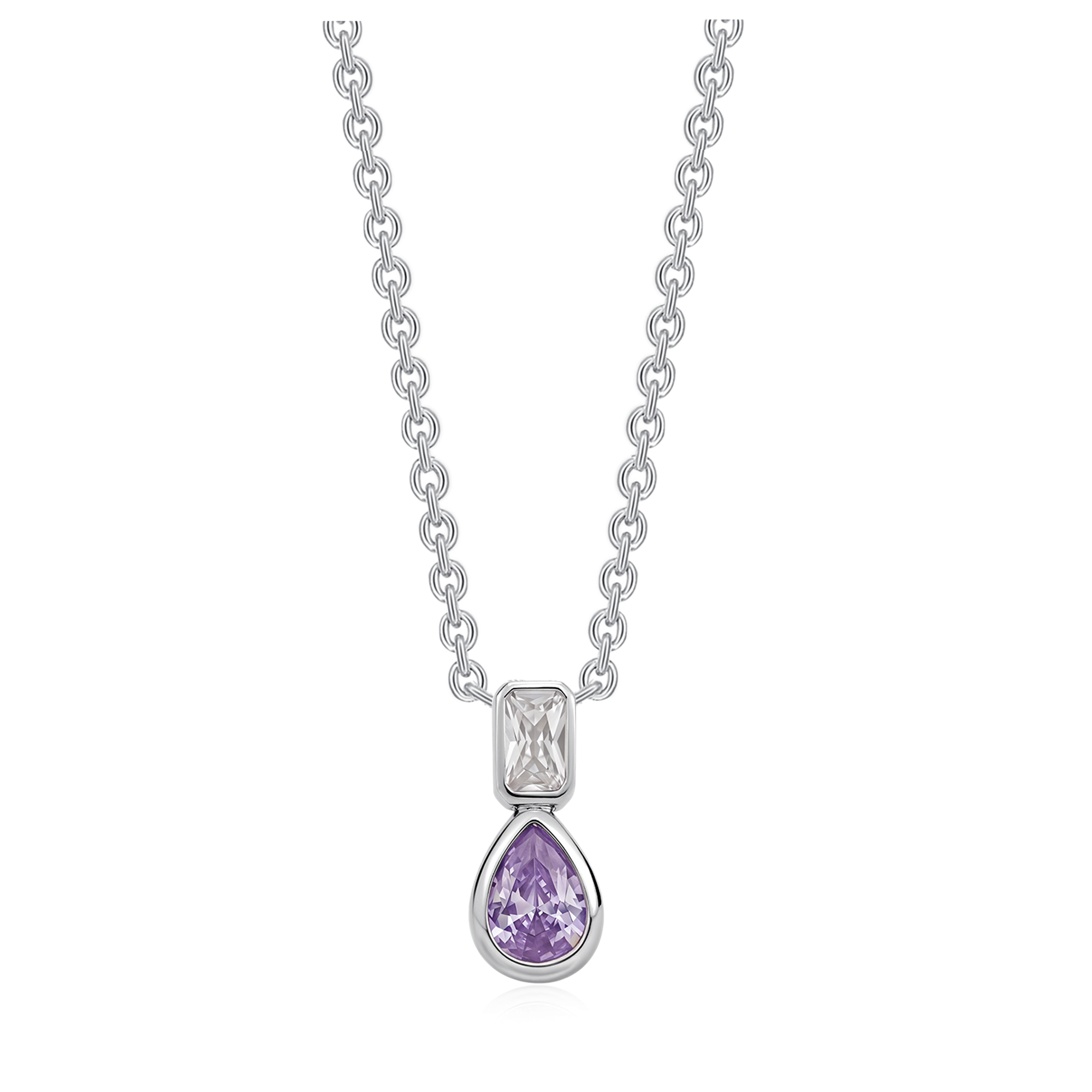 Sølv halskæde rhodineret en syntetisk cubic zirconia og en dråbe med synt. ametyst.