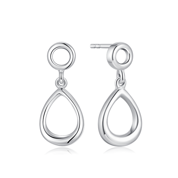 Sølv ørehænger rhodineret cirkel med oval som hænger