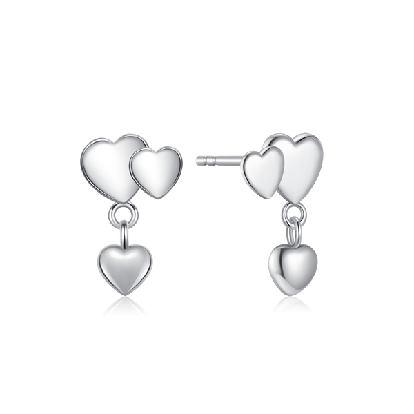 Sølv ørestikker rhodineret 3 forkellige hjerter, hvor den mindste hænger ned i bunden.
