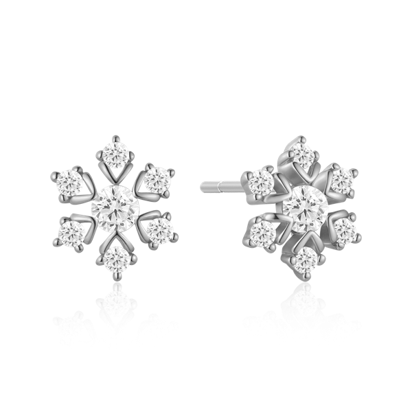 Sølv ørestikker rhodineret snefnug med syntetiske cubic zirconia.