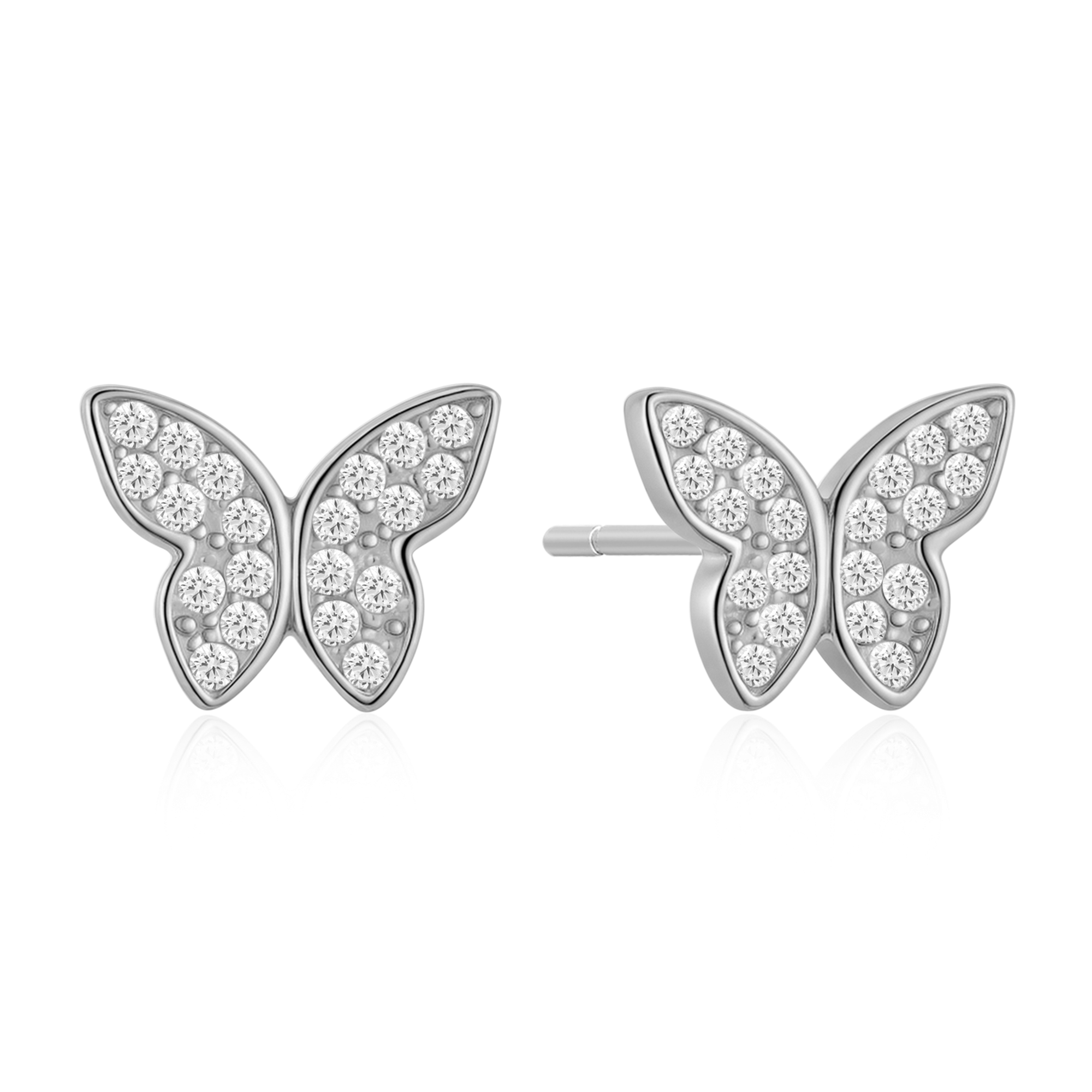Sølv ørestikker rhodineret sommerfugl med syntetiske cubic zirconia.