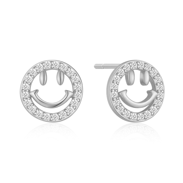 Sølv ørestikker rhodineret cirkel med smiley og syntetiske cubic zirconia