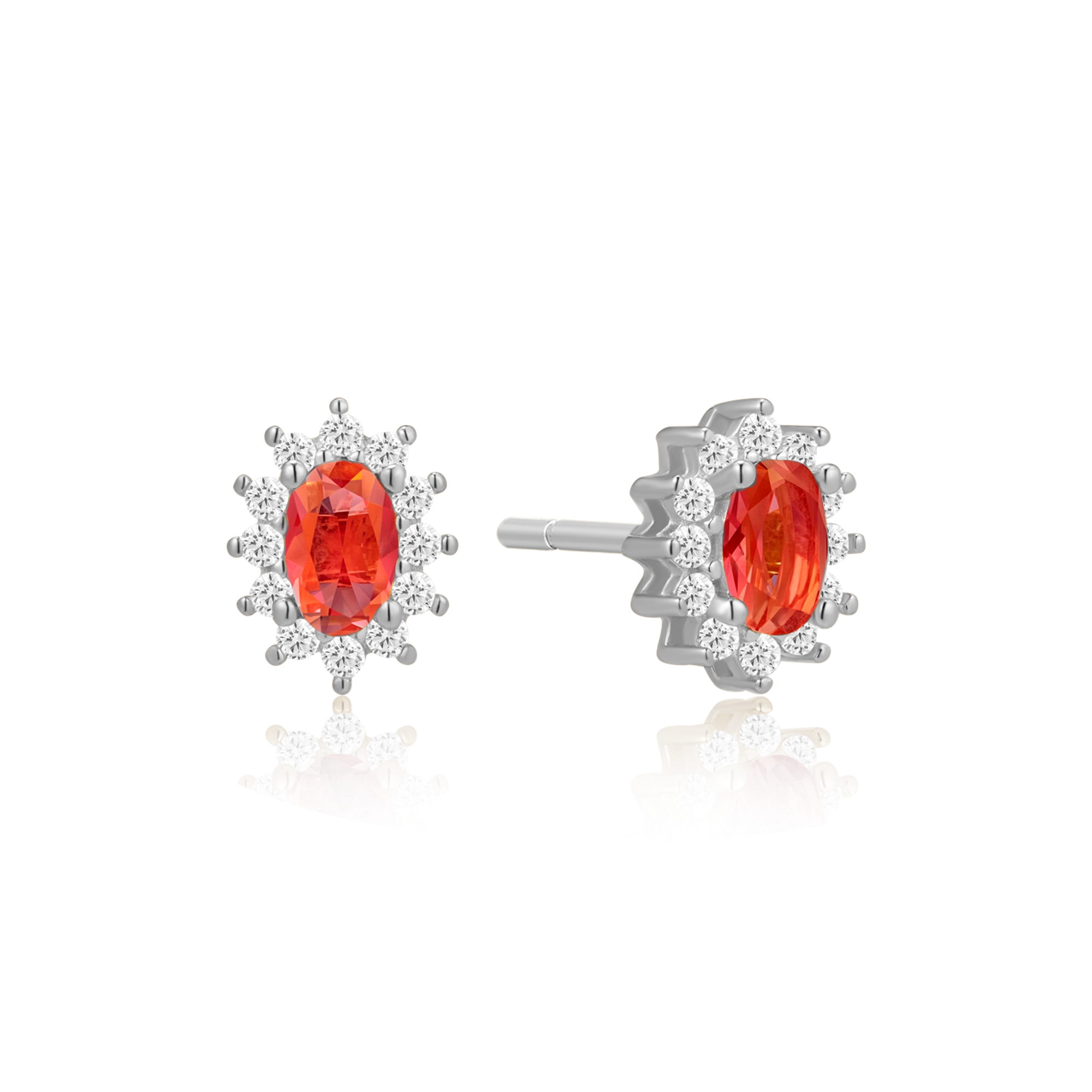 Sølv ørestikker rhodineret oval med syntetiske cubic zirconia og rubin.