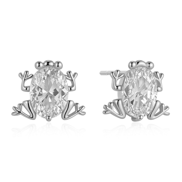 Sølv ørestikker rhodineret frø med syntetiske cubic zirconia.