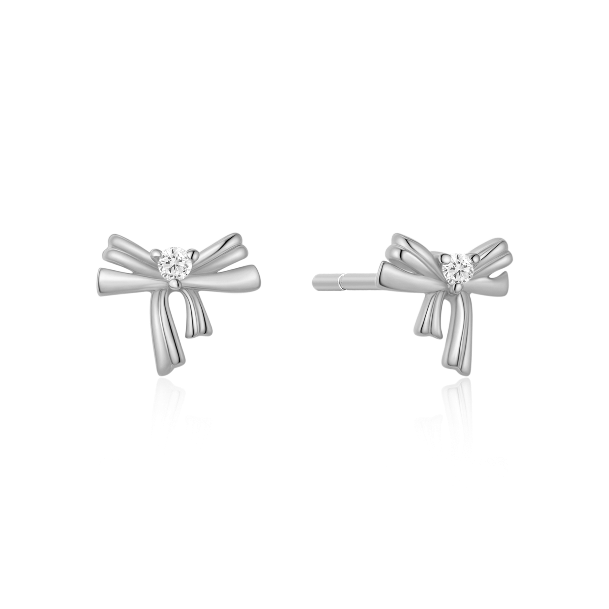 Sølv ørestikker rhodineret sløjfe med syntetisk cubic zirconia.