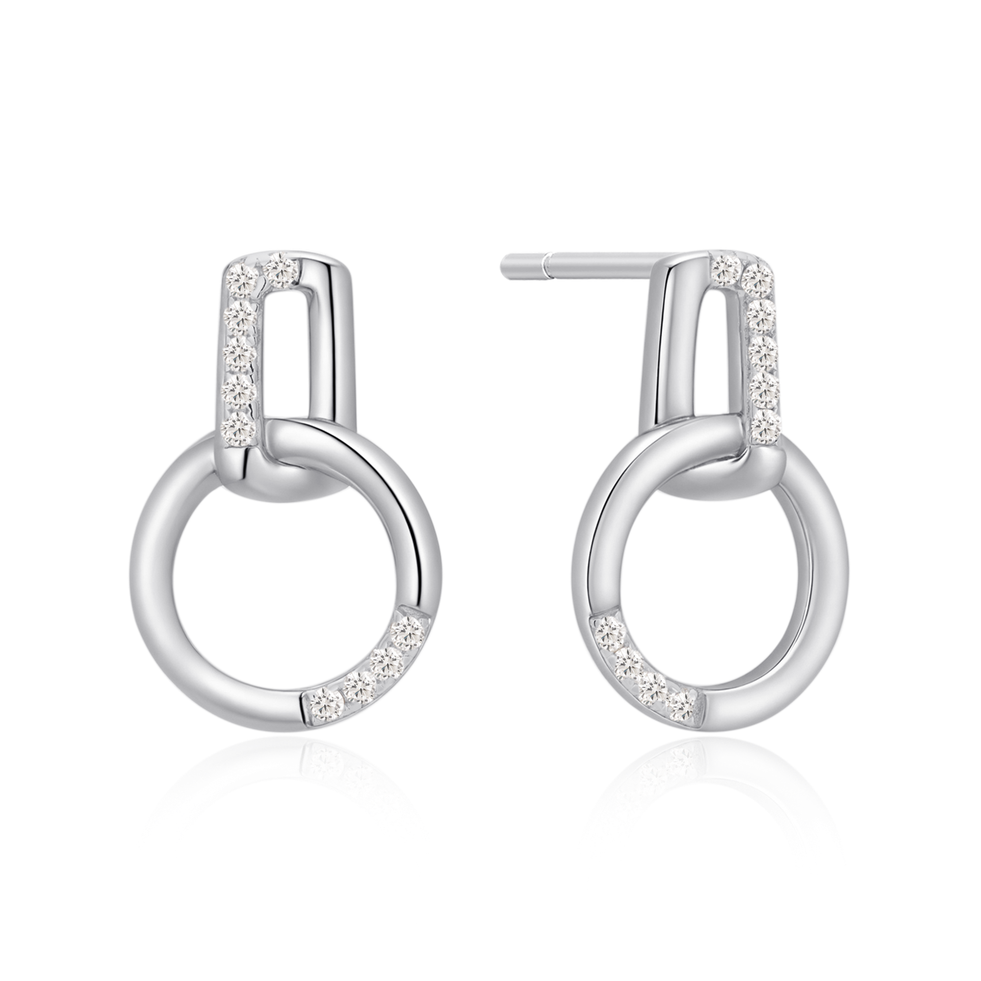 Sølv ørestikker rhodineret cirkel med syntetiske cubic zirconia.