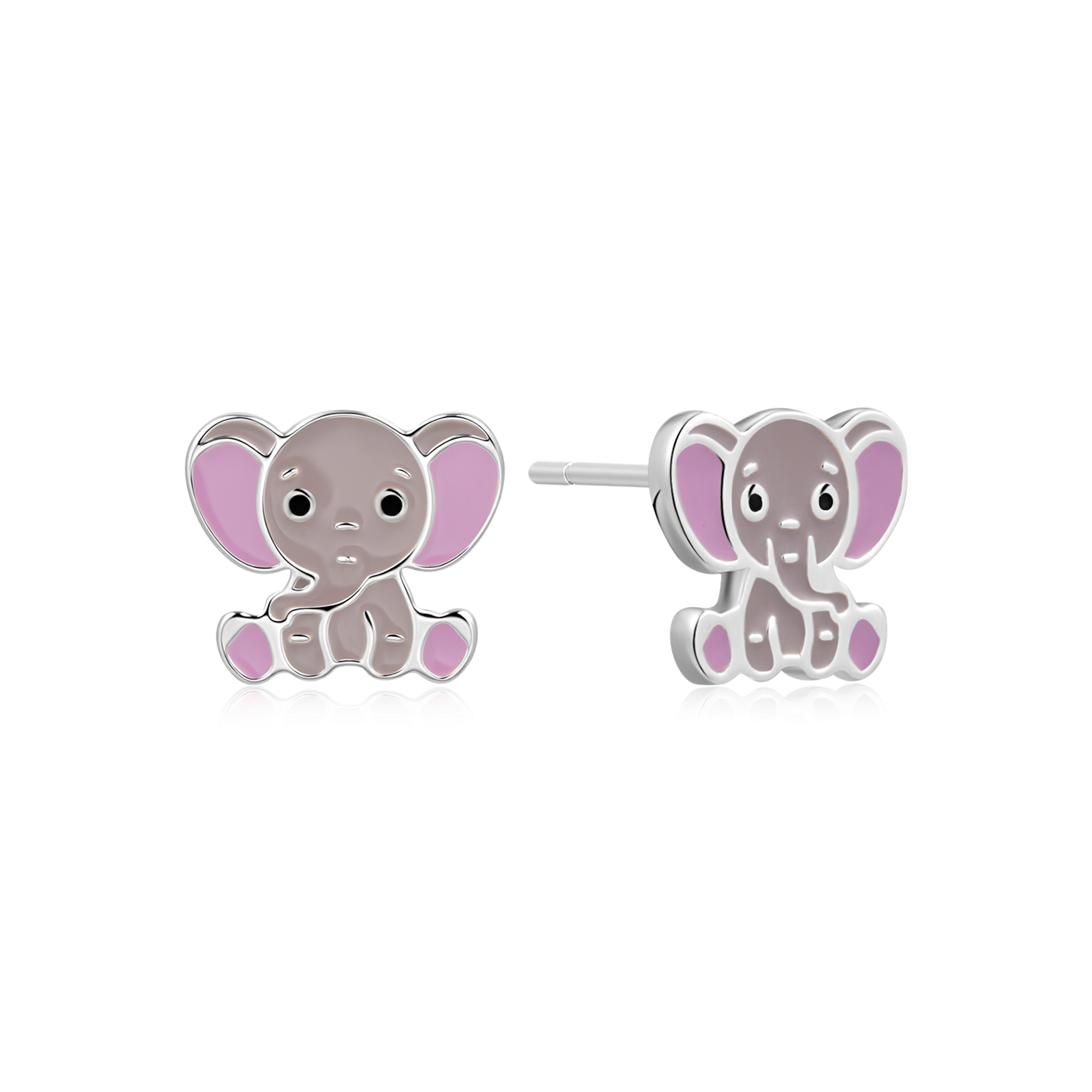 Sølv ørestikker rhodineret elefant med brune på kroppen og lilla på ørerne og potter blyfri emalje.