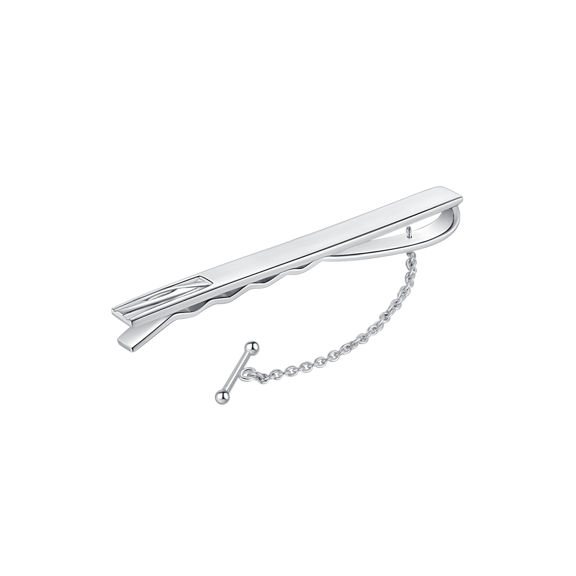 Sølv slipsenål rhodineret blank og buet, åben i siderne.