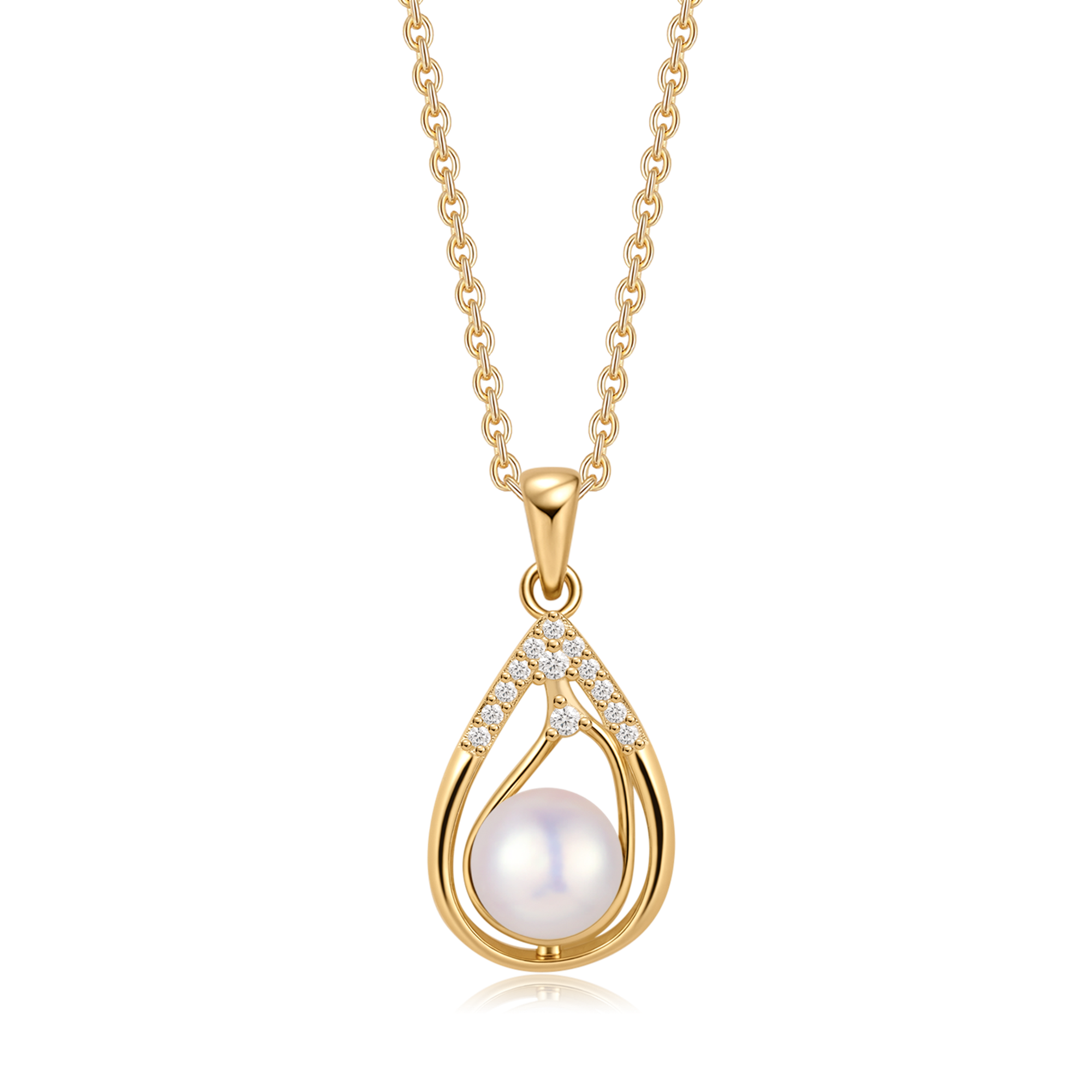 Sølvforgyldt halskæde dobbelt dråbe med syntetiske cubic zirconia og ferskvandsperle.