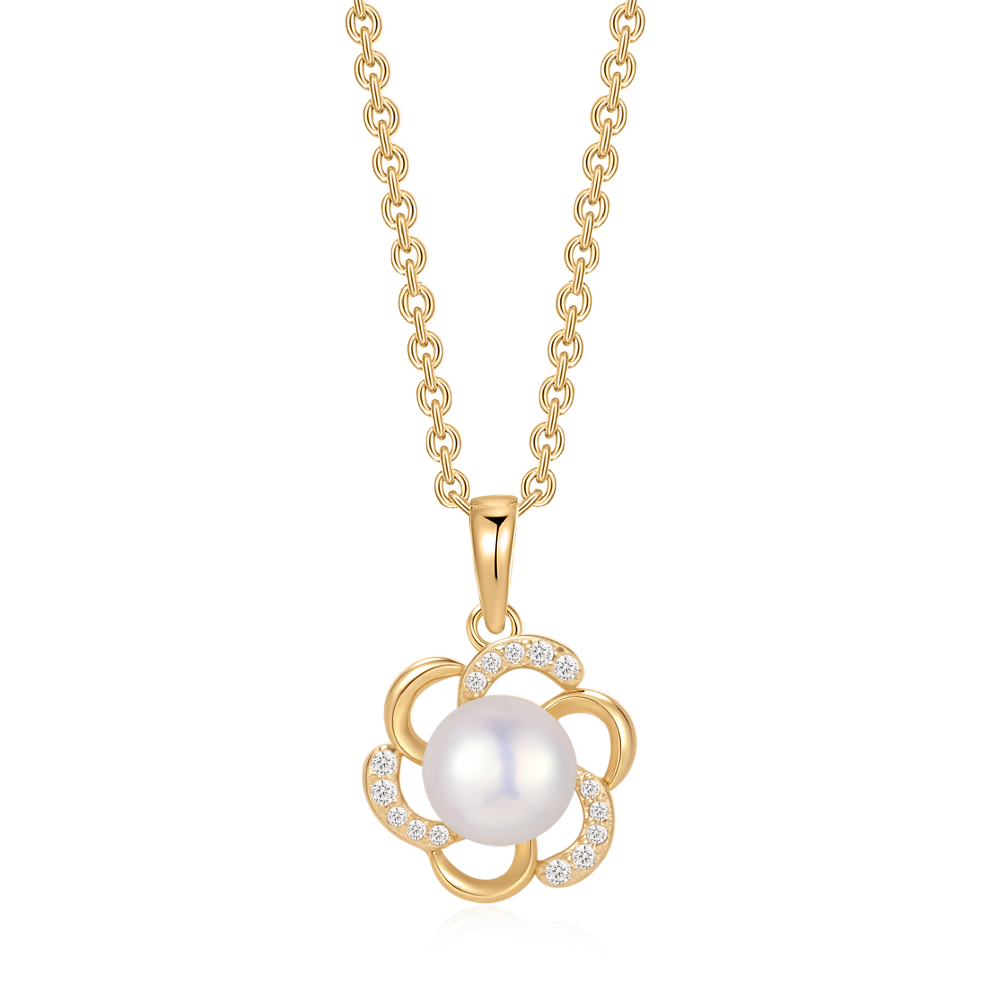 Sølvforgyldt halskæde blomst med syntetiske cubic zirconia og ferskvandsperle.