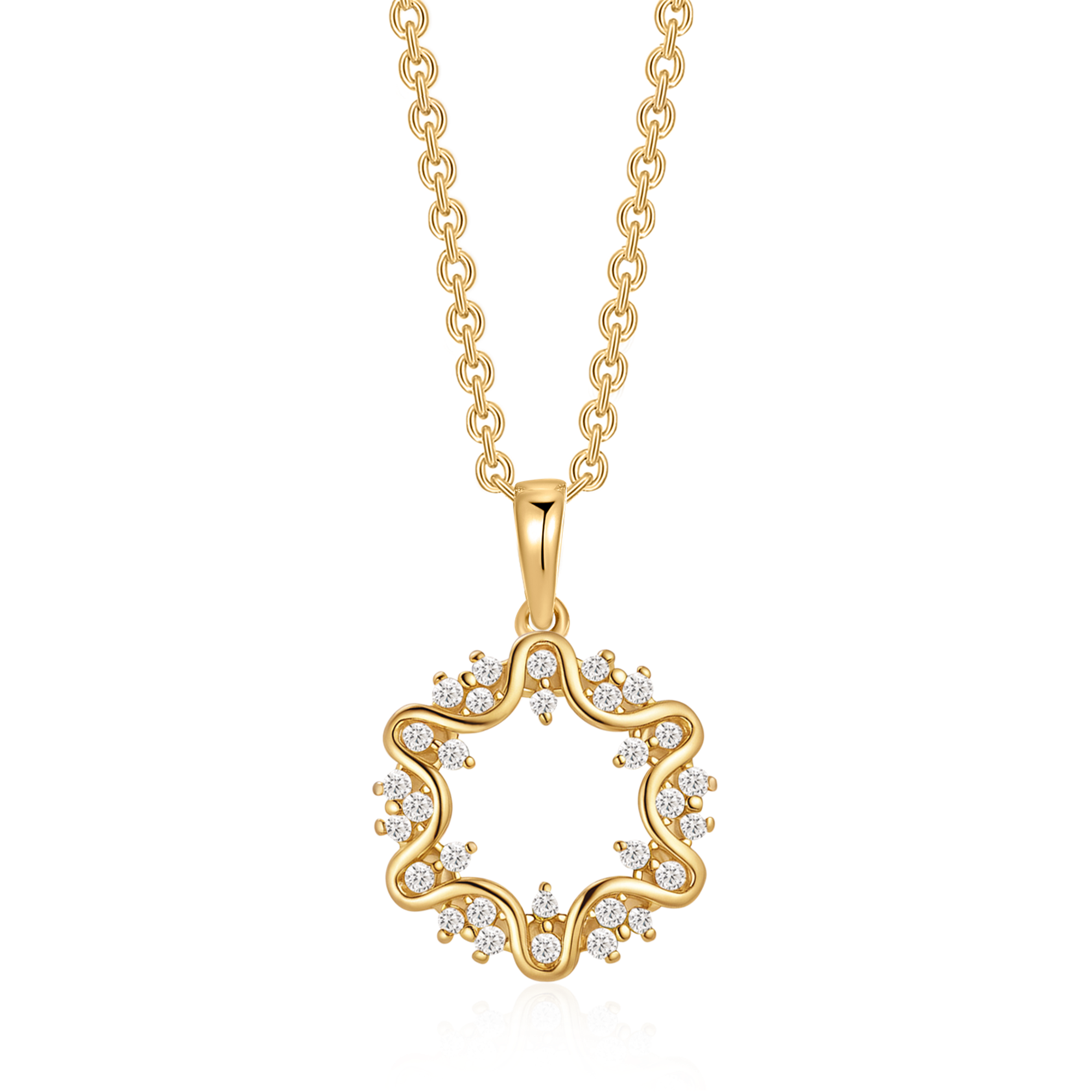 Sølvforgyldt halskæde cirkel med stjerne og syntetiske cubic zirconia.