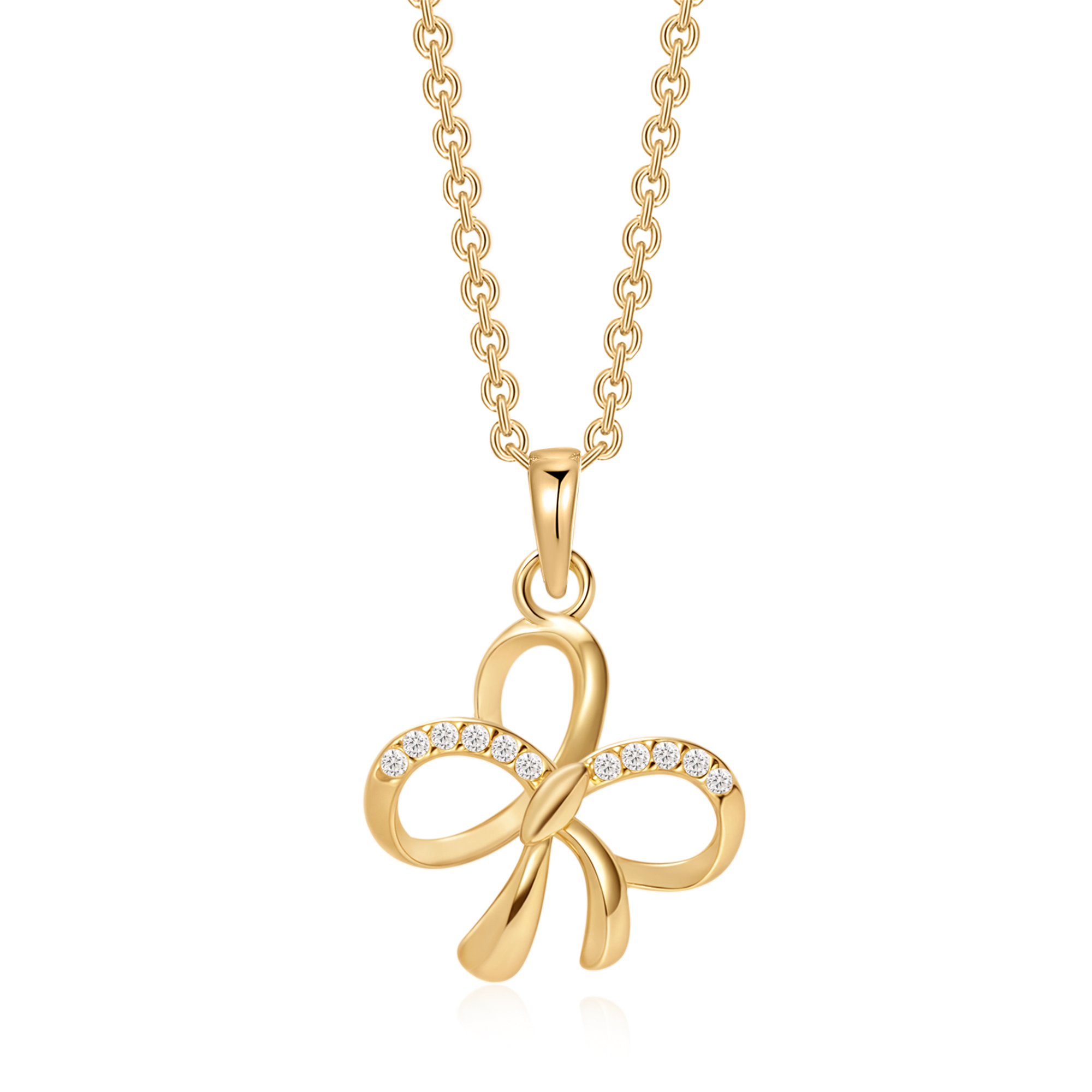 Sølvforgyldt halskæde sløjfe med syntetiske cubic zirconia.