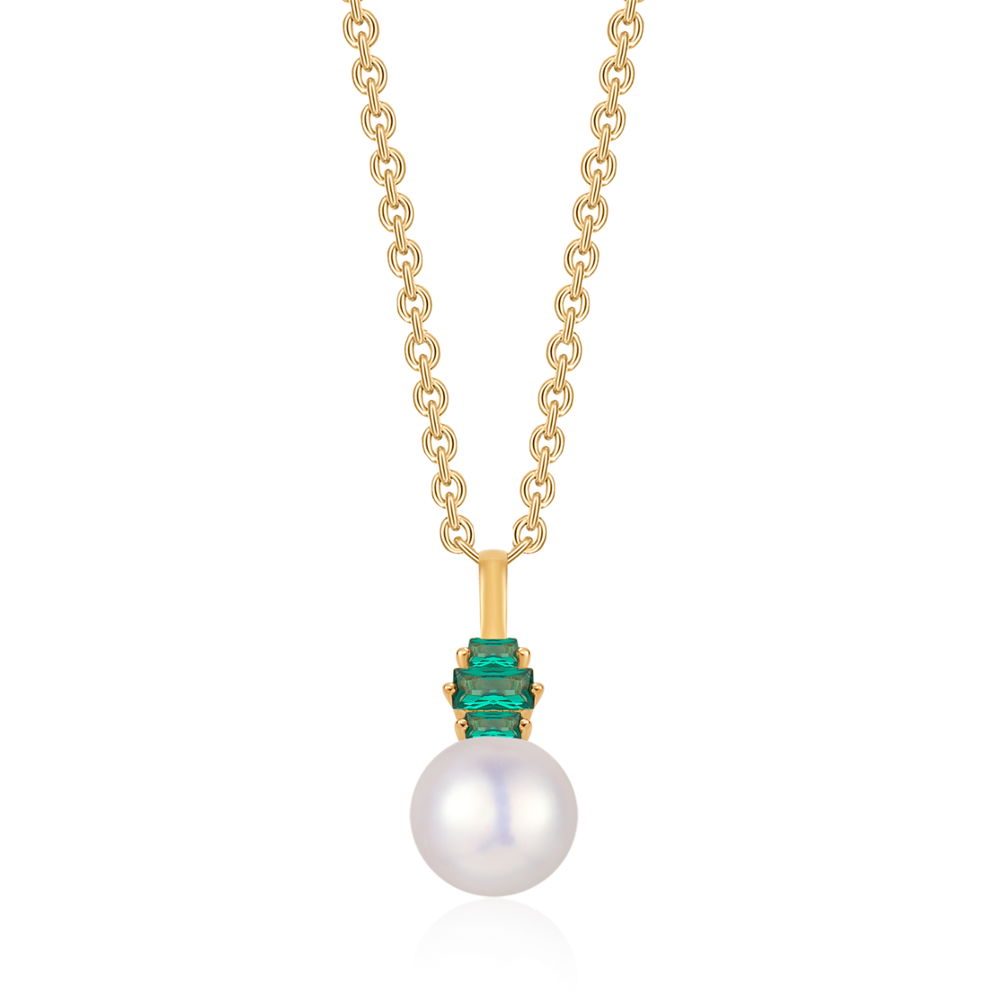 Sølvforgyldt halskæde 3 syntetiske smaragd med ferskvandsperle.