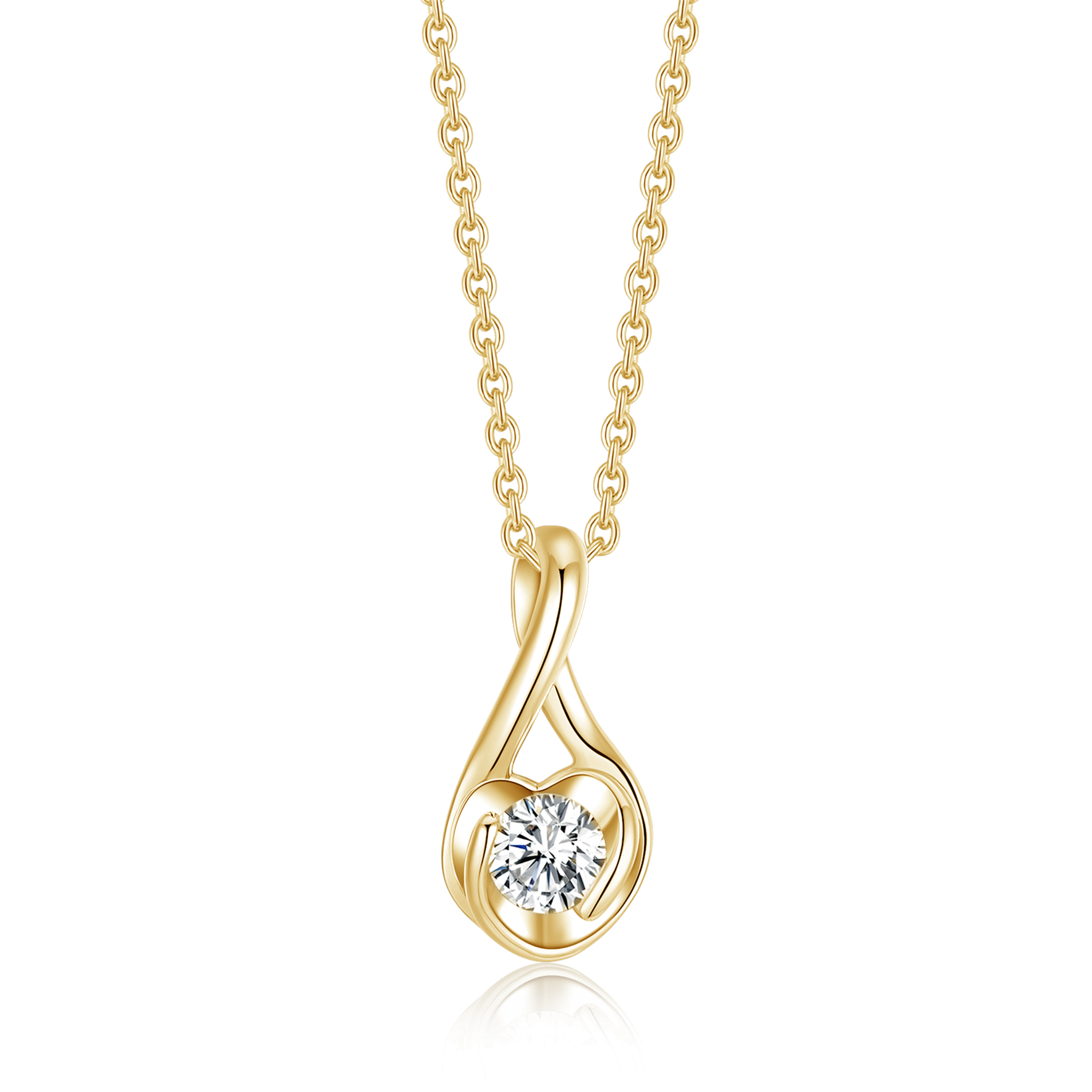 Sølvforgyldt halskæde hjerte med en syntetisk cubic zirconia på buet top til kæden.