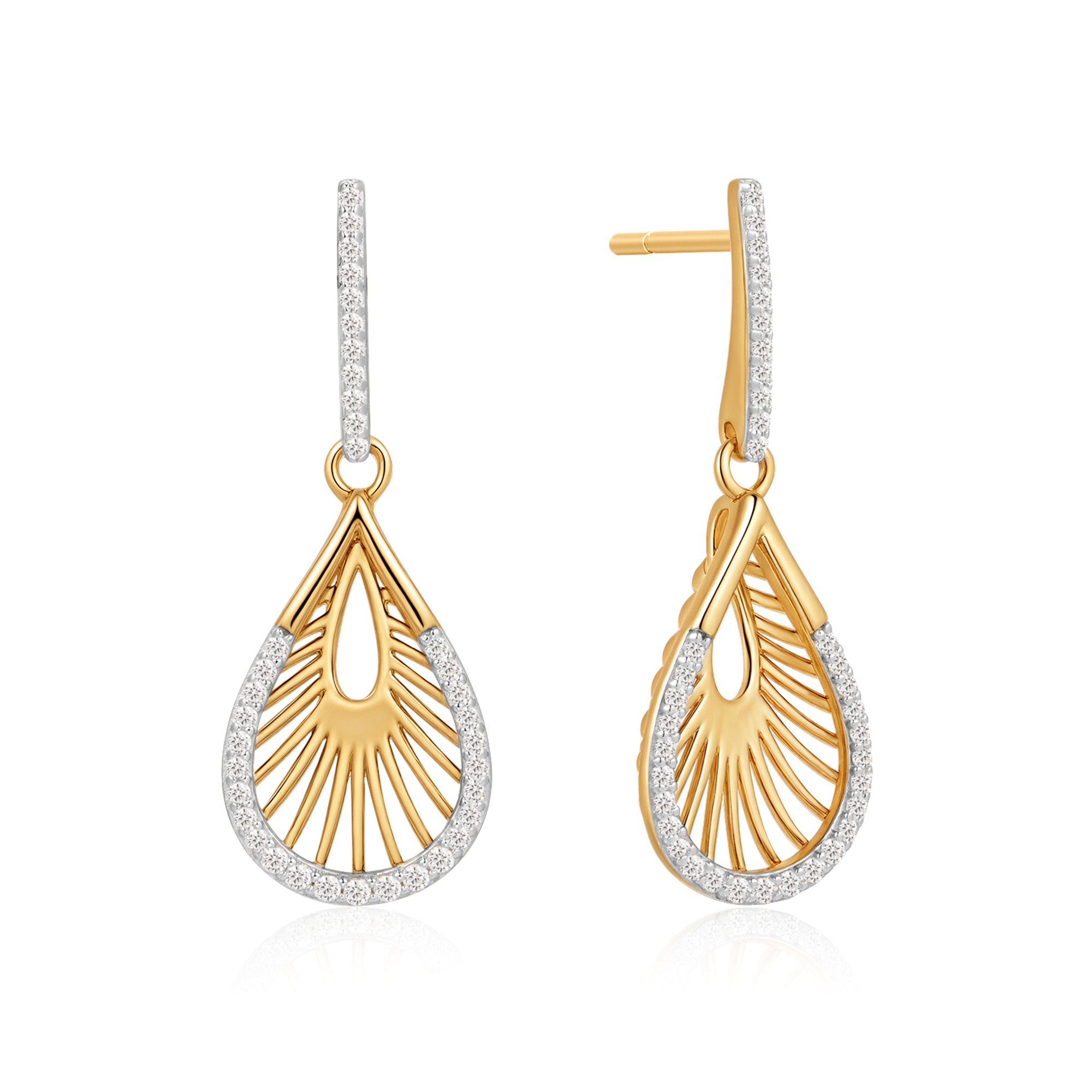 Sølvforgyldt ørehænger dråbe med streger og syntetiske cubic zirconia.