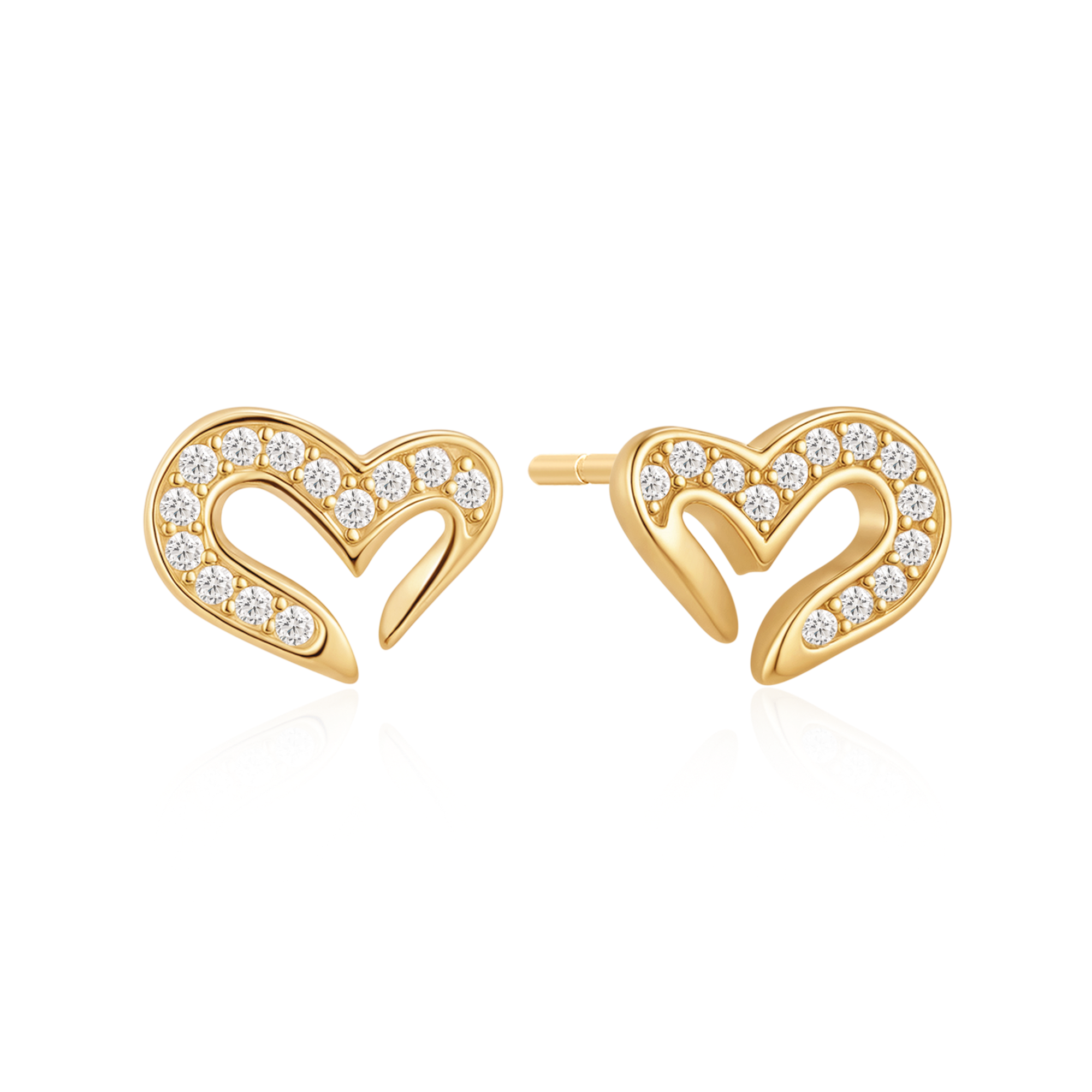 Hjärtformade örhängen i guldton med klara stenar infattade längs framsidan.
