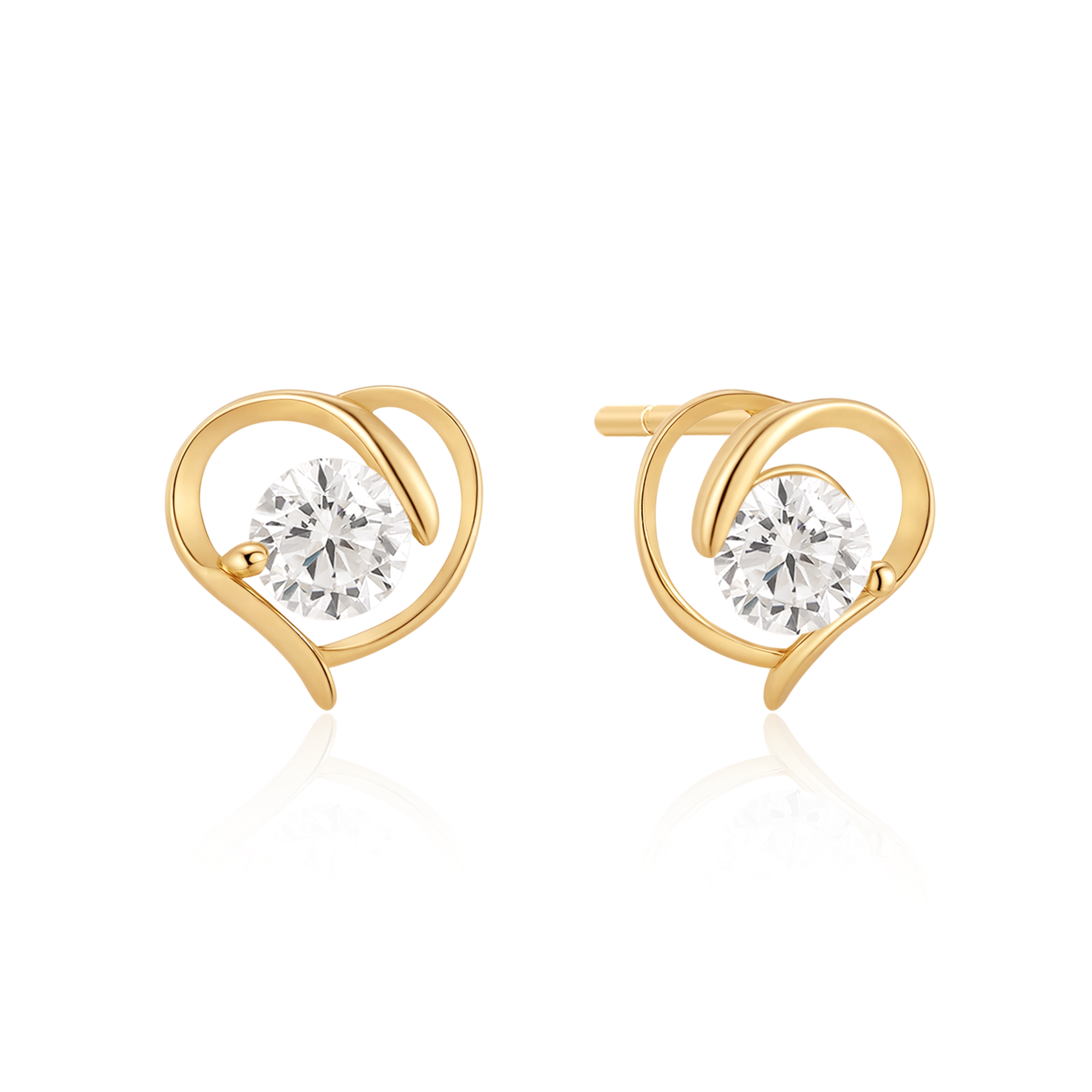 Sølvforgyldt ørestikker hjerte med en syntetisk cubic zirconia.