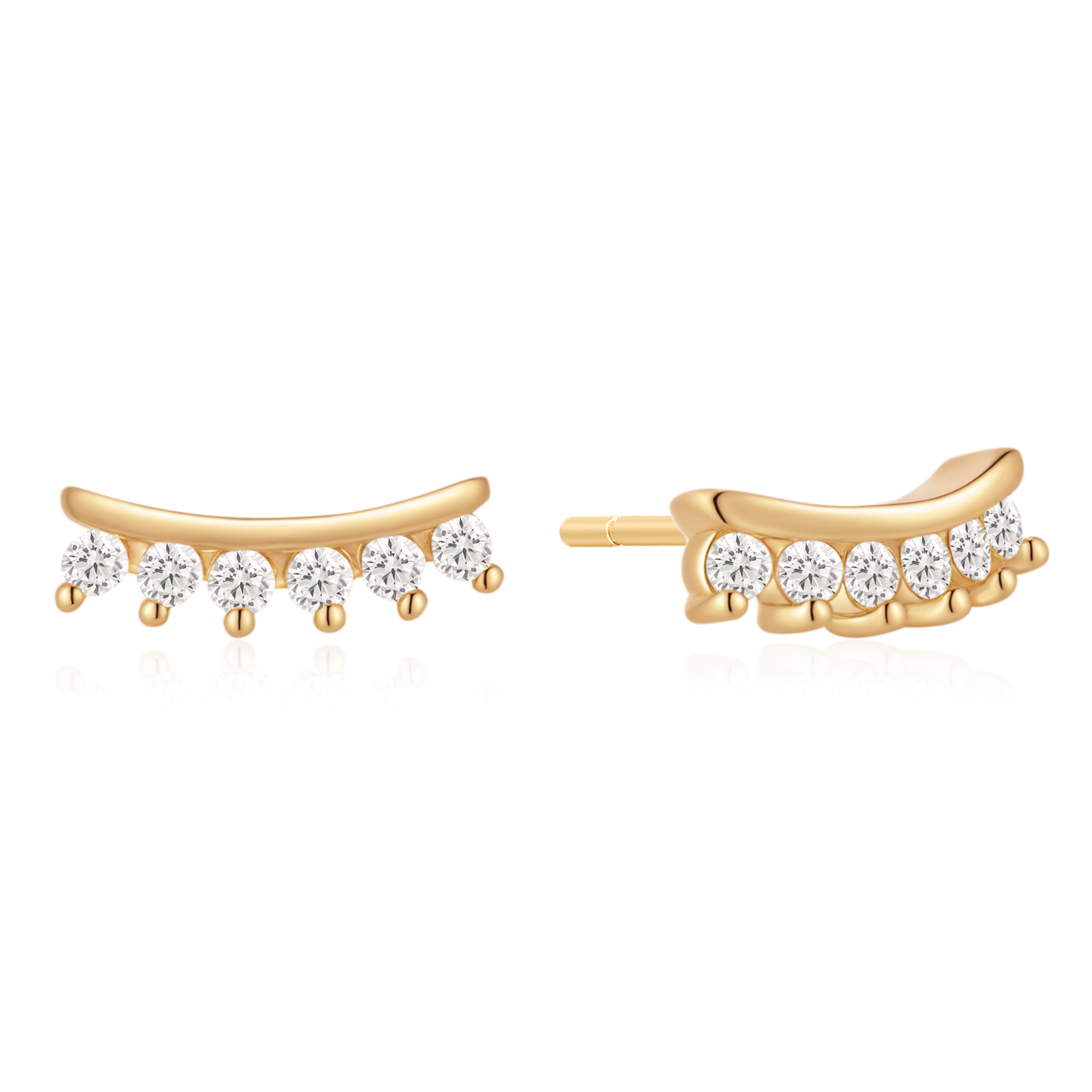 Den raka stiftinfästningen gör örhängena bekväma att bära dagligen utan besvär. Den tidlösa designen passar olika typer av festkläder, från klänningar till kostymer, och den böjda formen med stenar ger en särpräglad touch som drar blickar till sig.
