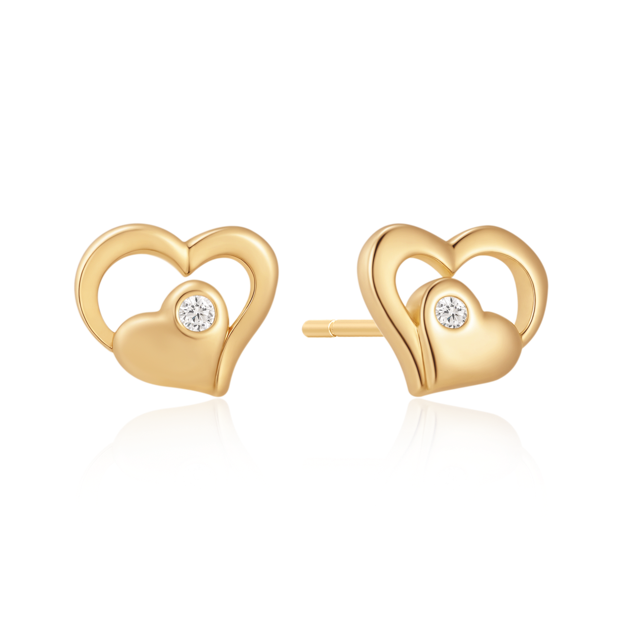 Sølvforgyldt ørestikker dobbelt hjerte med en syntetisk cubic zirconia.