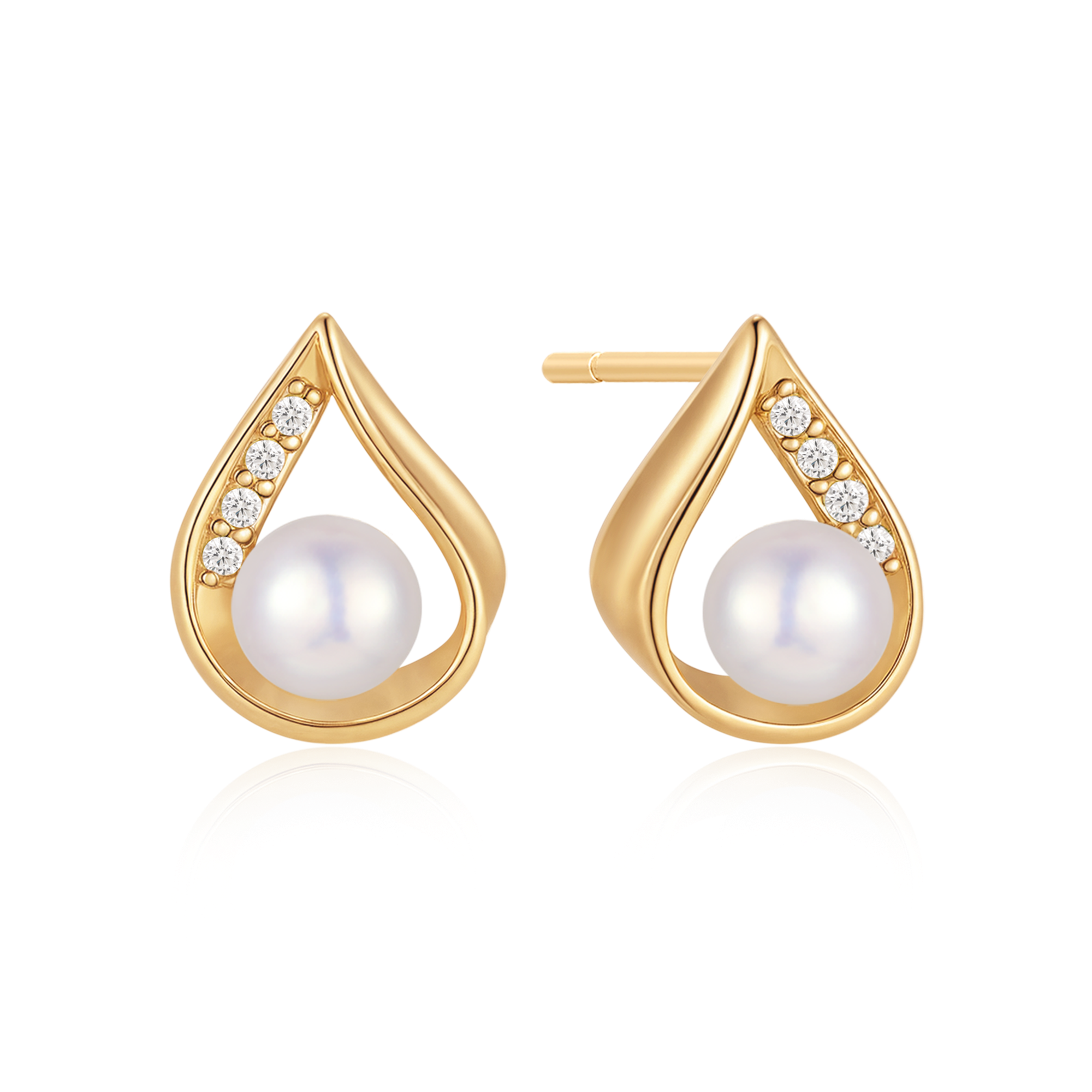 Sølvforgyldt ørestikker dråbe med ferskvandsperle og syntetiske cubic zirconia .