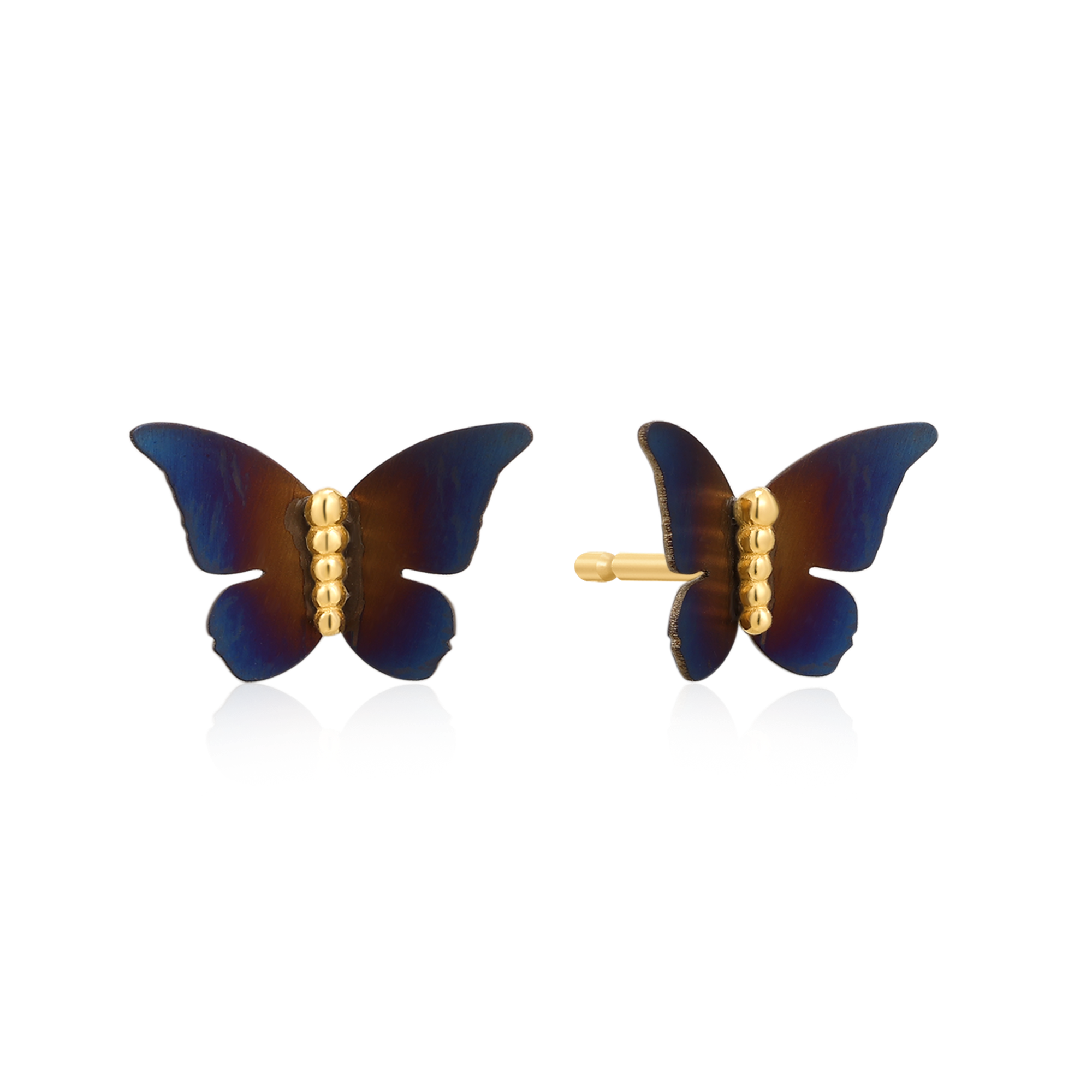 Sølvforgyldt ørestikker sommefulg i regnebue titanium.
