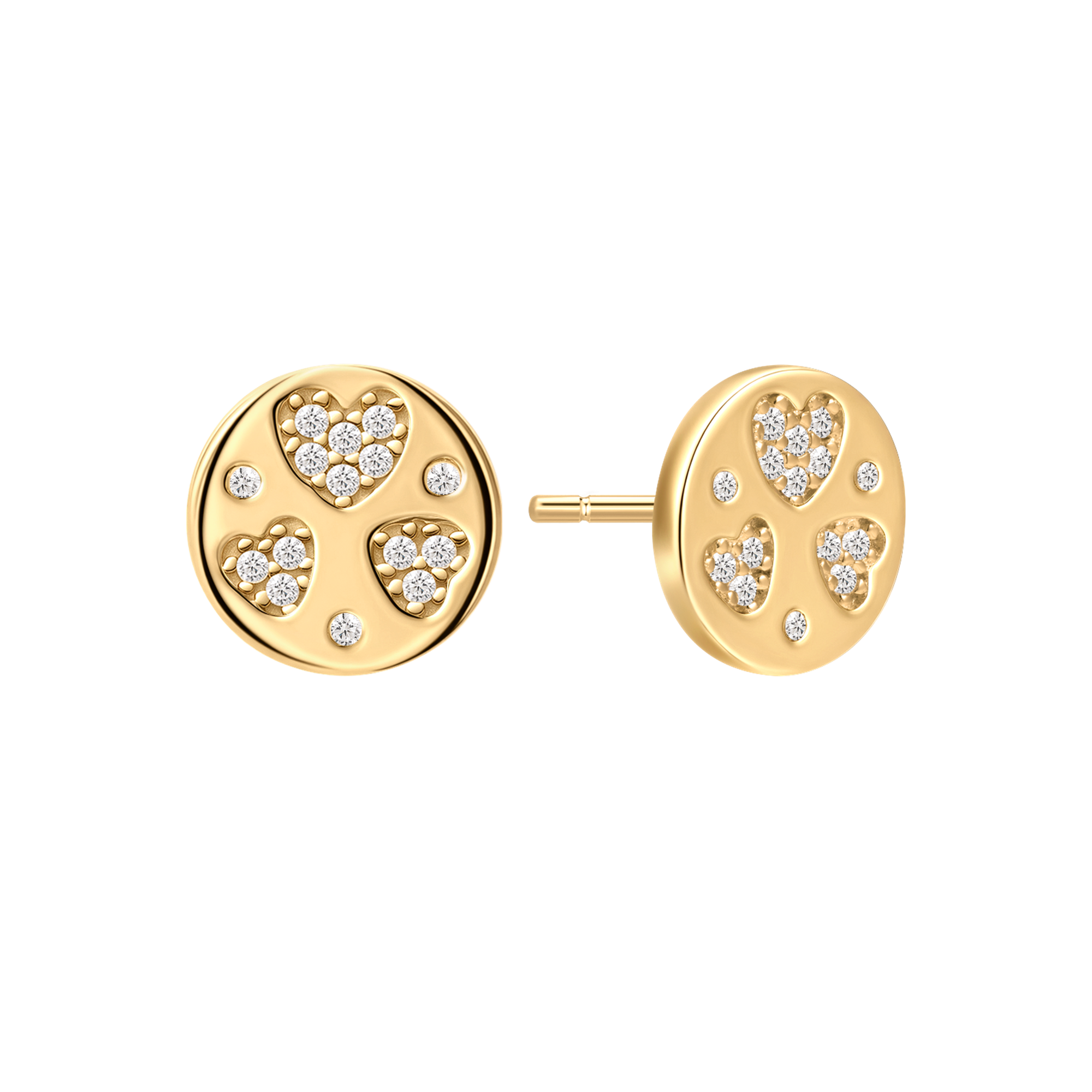 Sølvforgyldt ørestikker fyldt plade med 3 hjerter og syntetiske cubic zirconia.