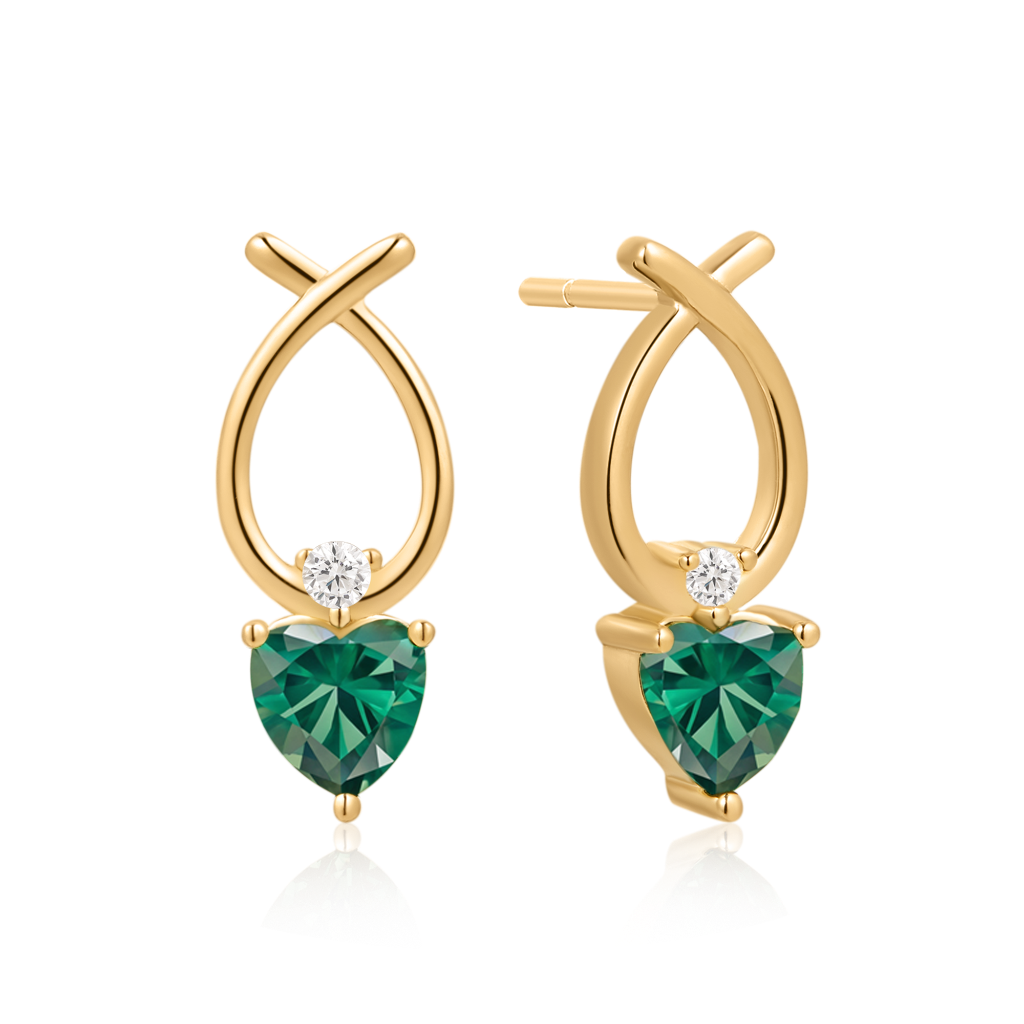 Sølvforgyldt ørestikker fletet oval med syntetisk smaragd og en syntetisk cubic zirconia.