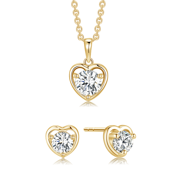 Sølvforgyldt smykkesæt hjerte med en syntetisk cubic zirconia.