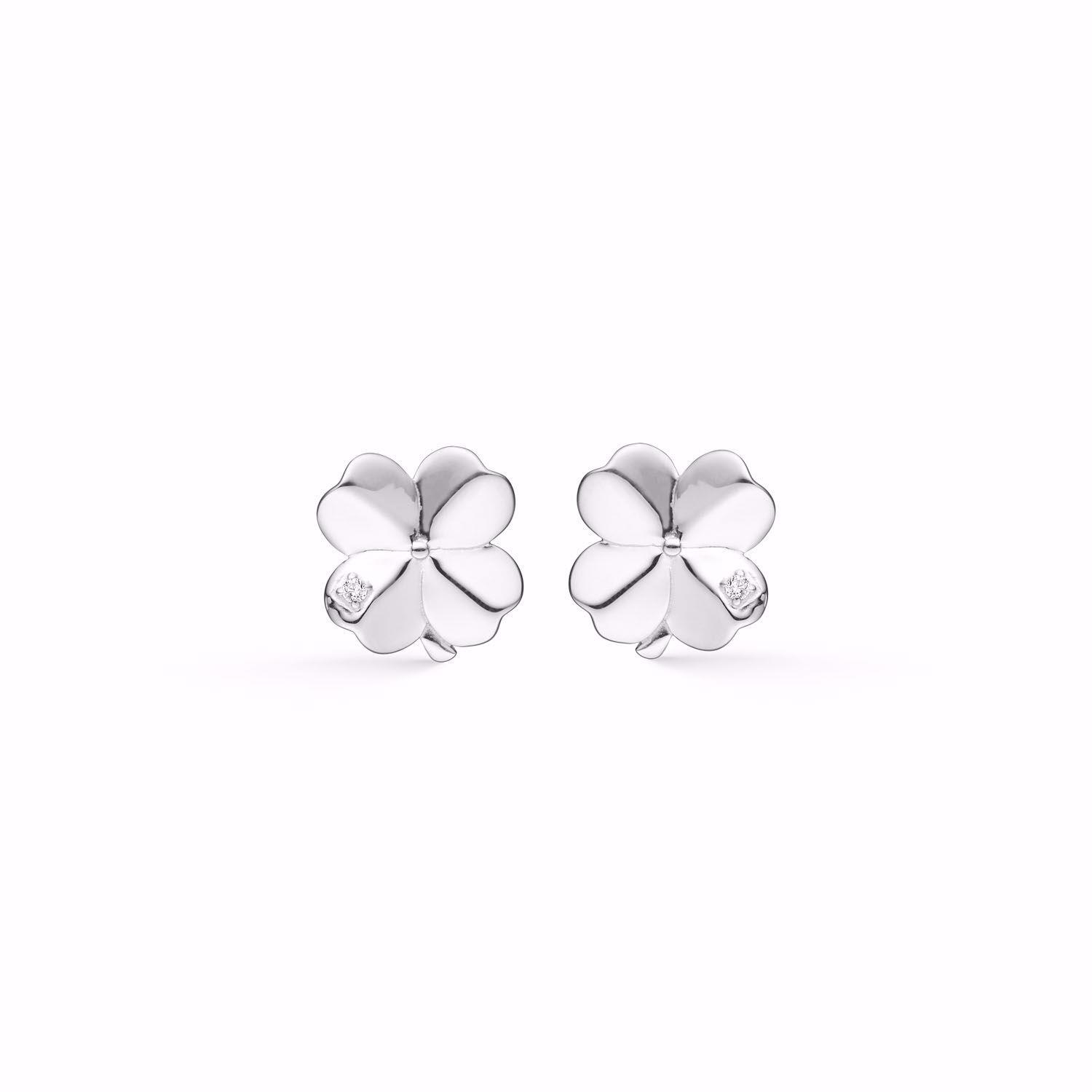 Sølvørering firkløver med zirkonia