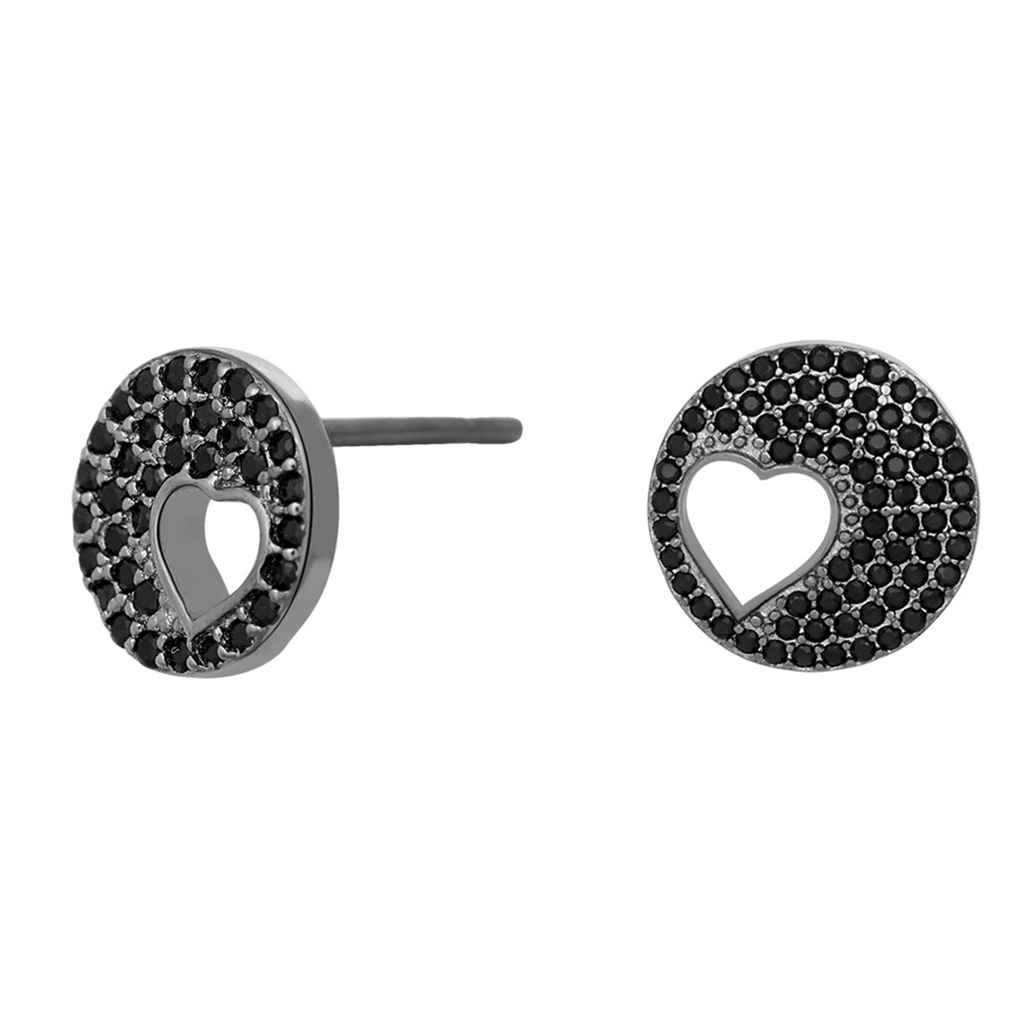 Søde og glimtende hjerte ørestikker. De sort rhodinerede sølvørestikker fra vores CornellaNor serie er en romantisk og sød tilføjelse til et hvert outfit. Hjertet er udskåret i en rund plade, der er besat med funklende kubisk zirkonia. Materiale: Sølv