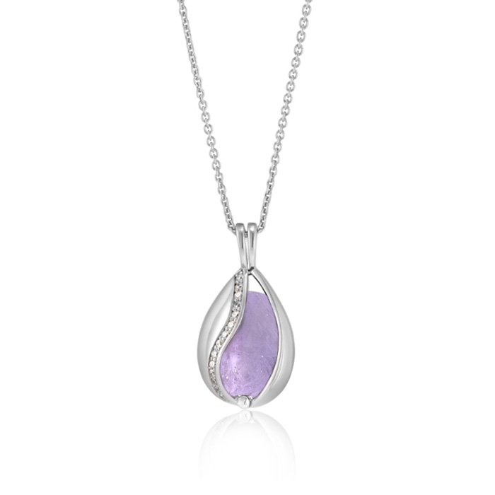 Stort blankt smykke æg med ametyst - Blicher Fuglsang