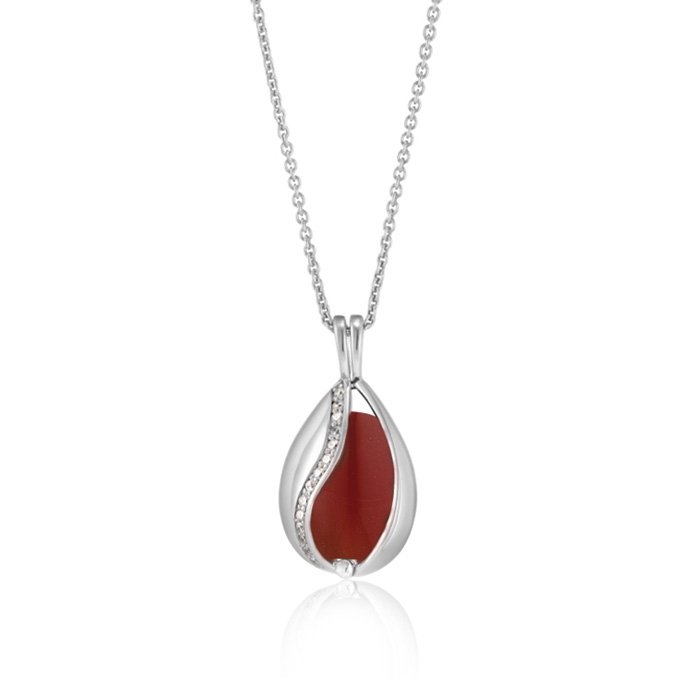 Stort blankt smykke æg med rød agat - Blicher Fuglsang