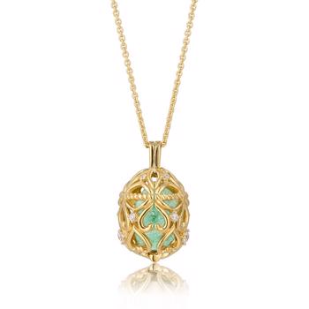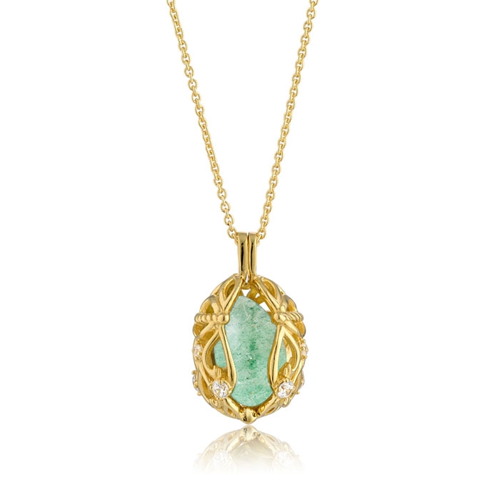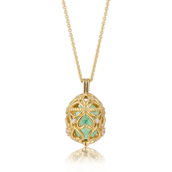 Stort smykke æg med zirkoner, Grøn Aventurin - fra Blicher Fuglsang, med 70-80 cm justerbar kæde