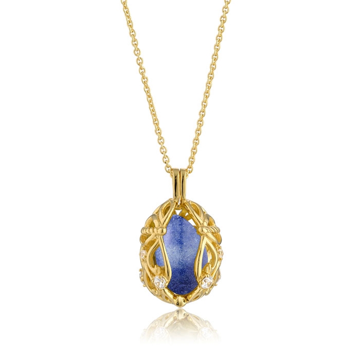 Stort smykke æg med zirkoner, Blå Aventurin - fra Blicher Fuglsang, med 42-45-50 cm justerbar kæde