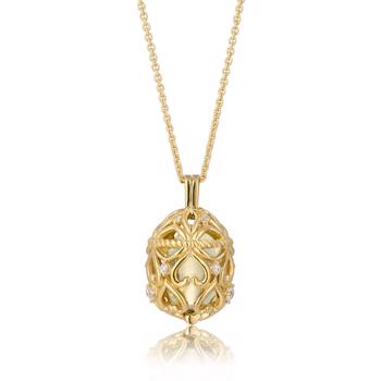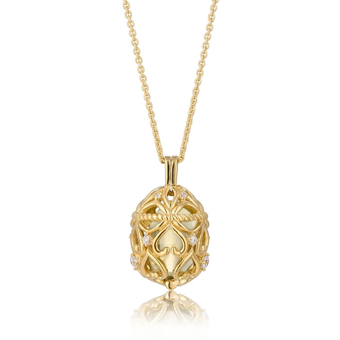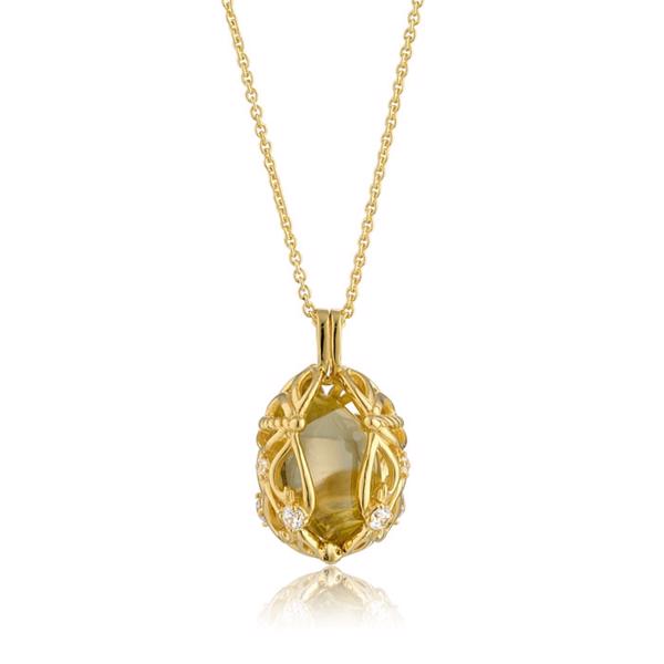 Stort smykke æg med zirkoner, Lemonkvarts - Blicher Fuglsang, med 42-45-50 cm justerbar kæde