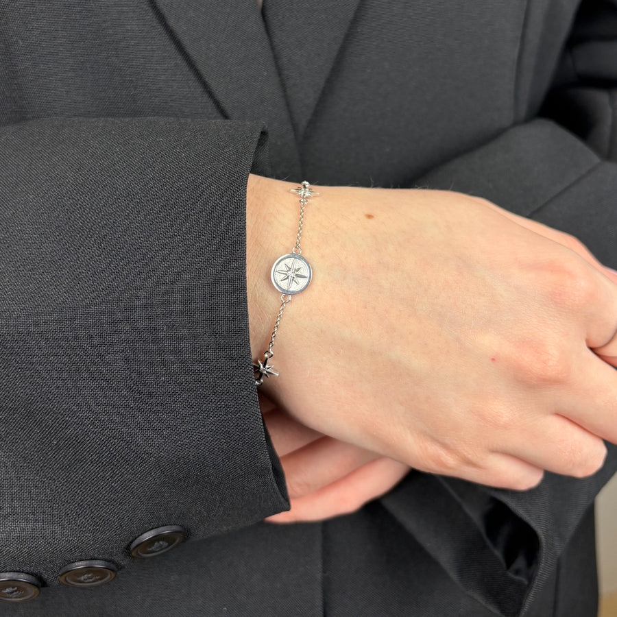 Nice bracelet with little stars on it. Two small and one slightly larger with a zirconia in it. The bracelet can be closed in different lengths, 16 + 4 cm