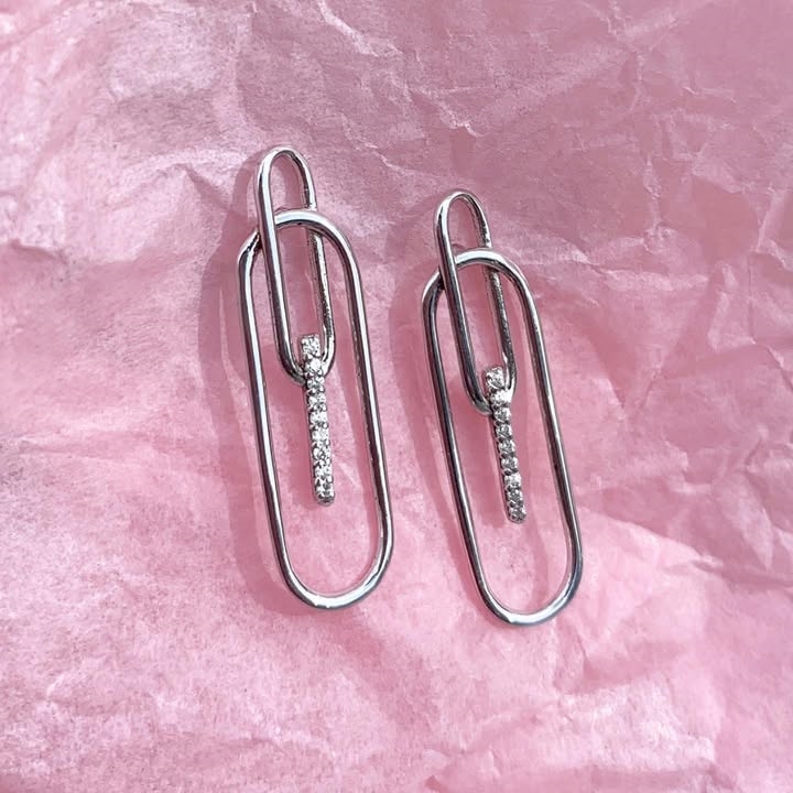 Fancy earrings shaped like paper clips. , 28 mm