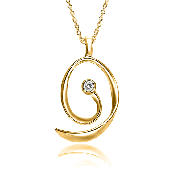 Spiralformet og blankpoleret vedhæng i forgyldt sølv, udsmykket med en smuk zirkonia.