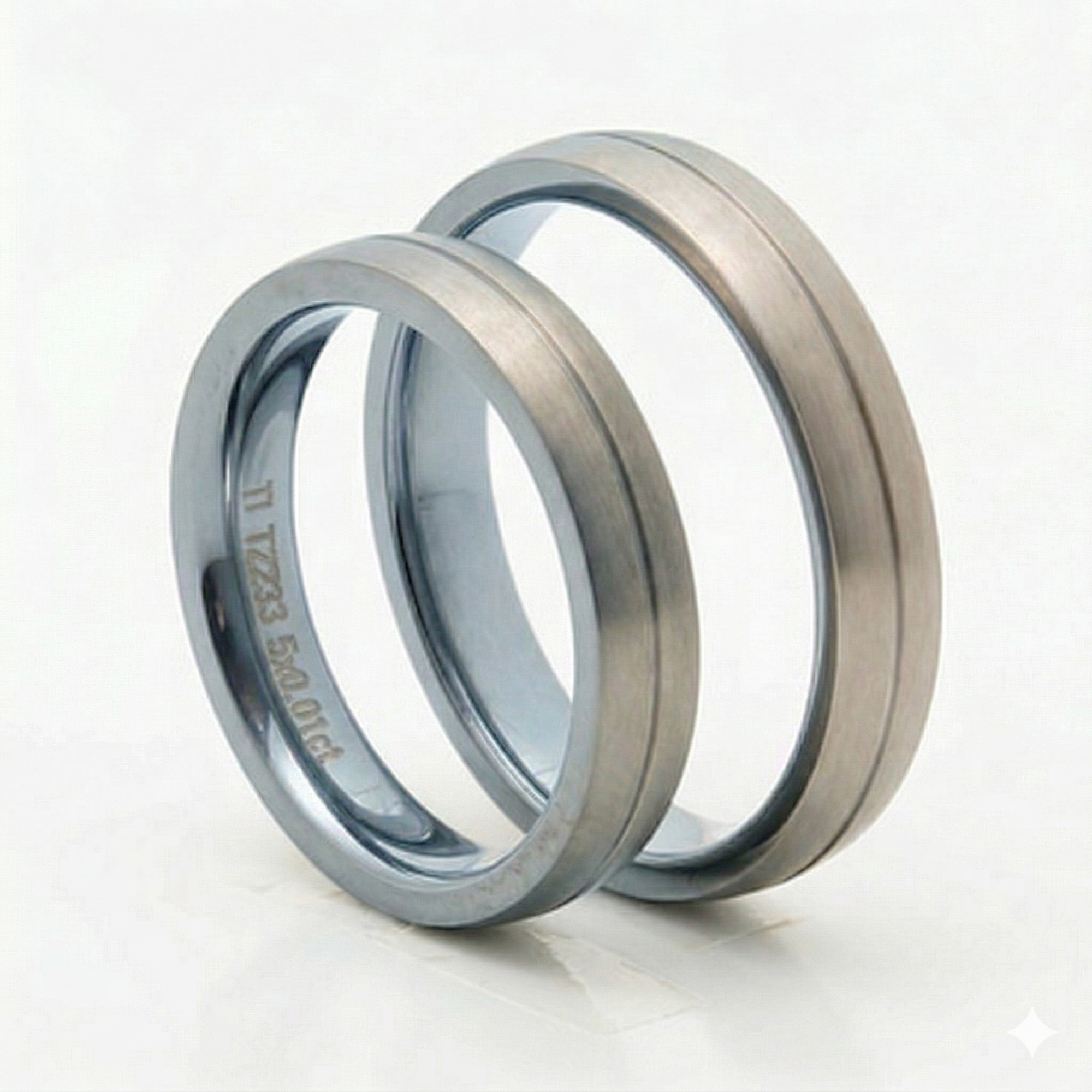 Elegant narrow titanium rings with engraved line